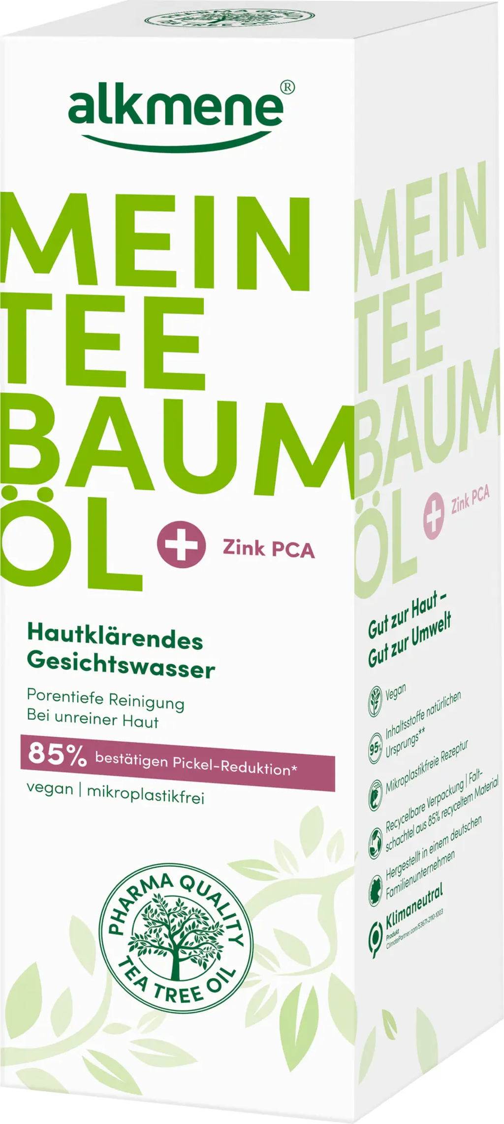 Tack vare en värdefull kombination av tea tree-olja och zink PCA rengör denna ansiktsvatten din hud på djupet. Den rengör porerna utan att torka ut den. Tea tree-olja och zink hjälper också till att reglera talgproduktionen, vilket gör denna toner idealisk för oren hud. Formulan är vegansk och fri från mikroplaster.
