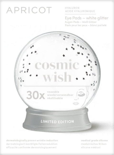 Hyaluron Eye Pads i Limited Edition Cosmic Wish från APRICOT vårdar och fräschar upp huden runt ögonen direkt. Hyaluronsyra ger intensiv återfuktning och hjälper till att varsamt jämna ut huden. Padsen är tillverkade av medicinsk silikon, vilket gör dem extra mjuka och bekväma att använda. Du kan återanvända padsen upp till 30 gånger.