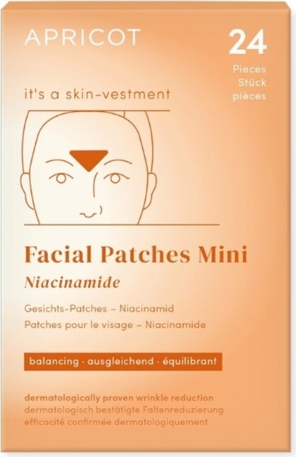 APRICOTs niacinamid-ansiktsplåster utvecklades för att erbjuda dig okomplicerad vård för din panna och rynkor. De är berikade med niacinamid för att ge en mjuk hudkänsla och är särskilt fördelaktiga för fet, storporig och benägen hud. De veganska plåstren är enkla att applicera och används endast en gång – vilket gör att du kan rikta in dig på specifika områden i din hudvårdsrutin. Helst kan du också bära dem över natten för att bekvämt integrera dem i din rutin.