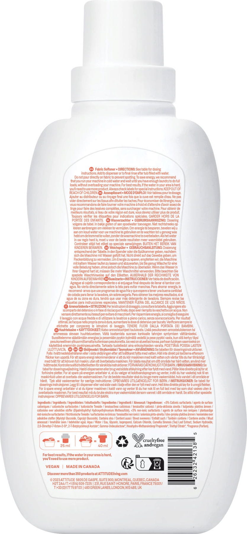 Detta sköljmedel från ATTITUDE är speciellt utvecklat för baby- och barntvätt. Naturligt päronextrakt mjukgör kläder och lämnar en lugnande doft. Perfekt för känslig babyhud.
