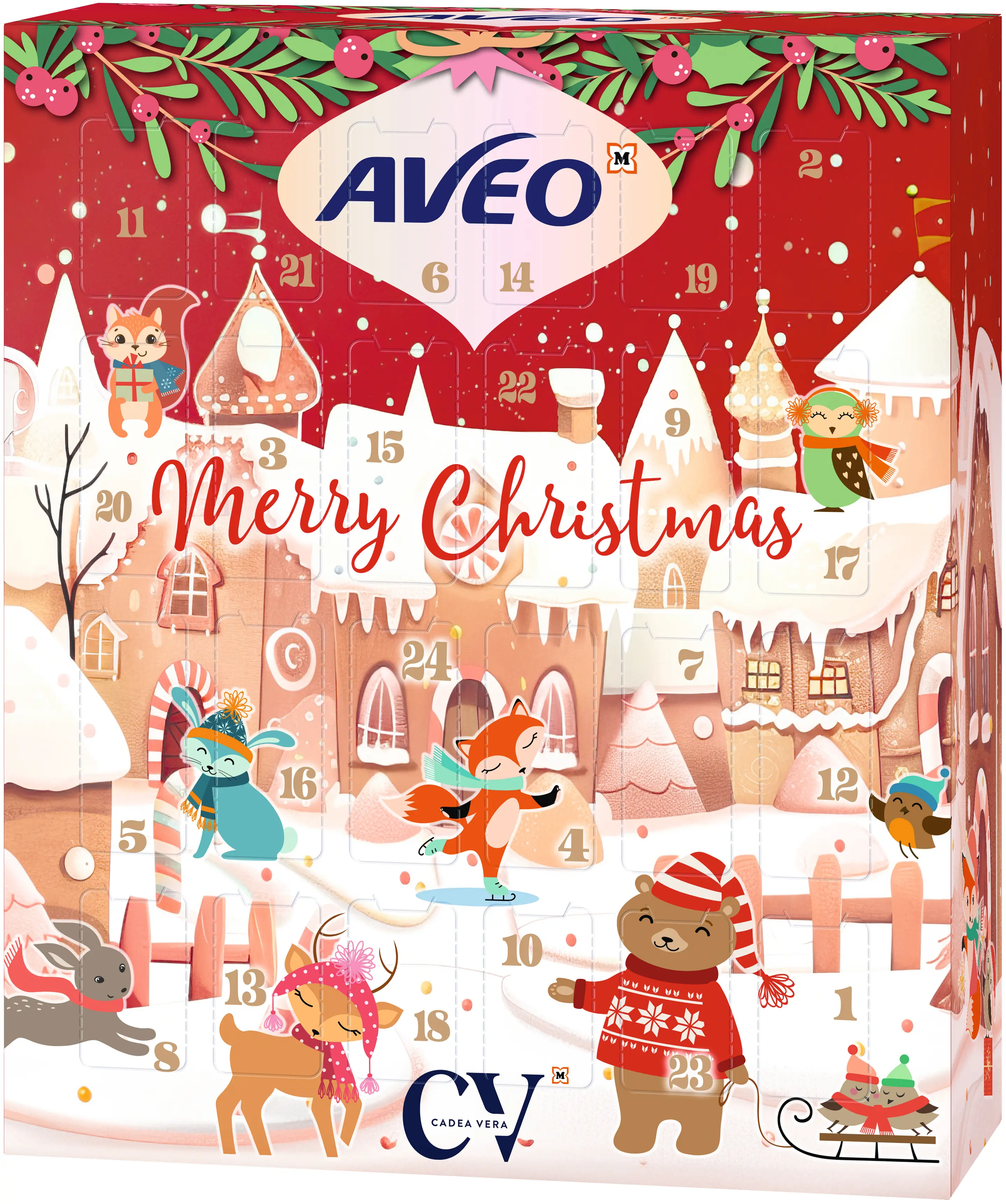 Denna adventskalender innehåller 24 hudvårdsöverraskningar som väntar på att bli upptäckta. Vårdande produkter från varumärkena AVEO och CV kommer att skämma bort din hud – inklusive duschgeler, bodylotioner, handkrämer och mycket mer.