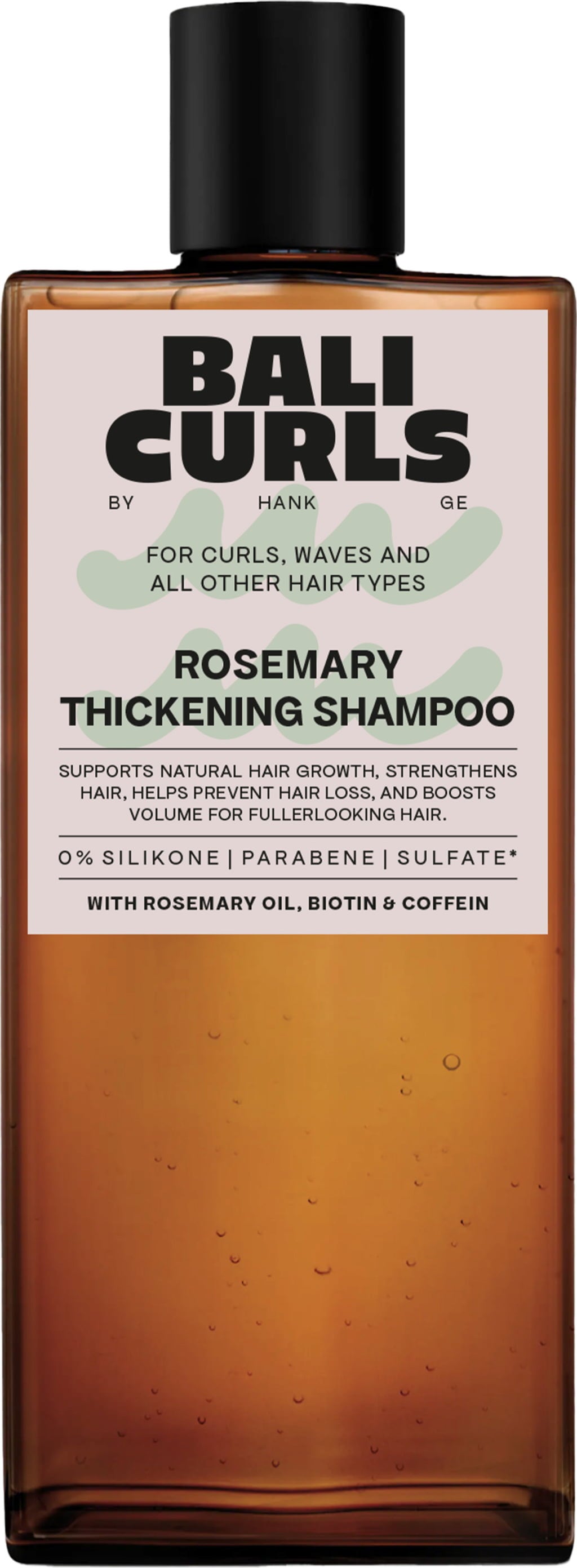 Rosemary Thickening Shampoo från BALI CURLS ger fint, tunt hår ett fylligare utseende. Rosmarinolja, koffein och biotin tränger djupt in i hårstrukturen och ger intensiv vård. Formuleringen av schampot är vegan och fri från silikoner och parabener.