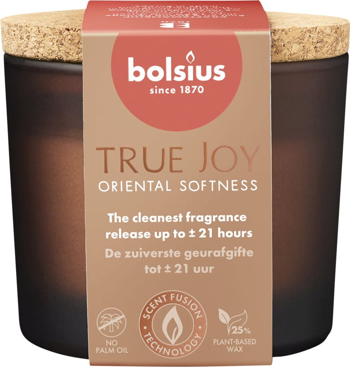 Låt dig förtrollas av den milda doften från doftljuset True Joy från Bolsius. En långvarig doftfrisättning i upp till 21 timmar skapar en perfekt må-bra-atmosfär i dina vardagsrum. Ljuset är delvis tillverkat av vegetabiliskt vax och är palmoljefritt.