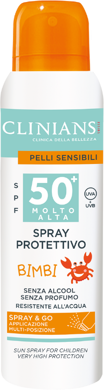 Denna solskyddsspray från Clinians skyddar barnens hud med SPF 50+. Solskyddet är fritt från parfym och färgämnen, och vårdar istället med aloe vera och kamomill. Formulan absorberas snabbt och ger pålitligt skydd mot UV-strålar.