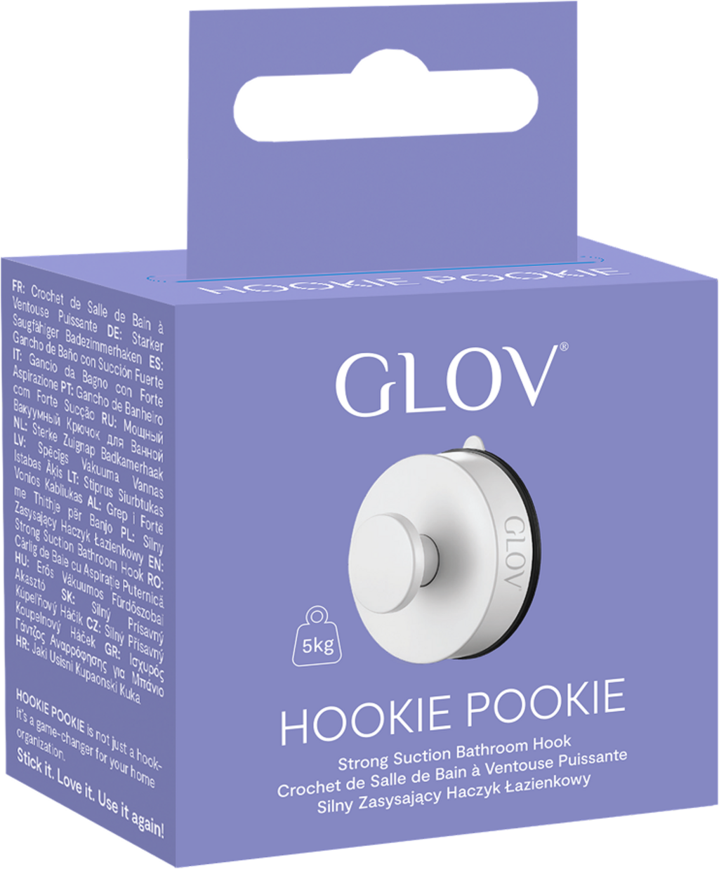 Den ultrarobusta Hookie Pookie-väggkroken fäster stadigt på släta ytor och håller fast dina viktigaste saker. Den är lätt att sätta upp på väggen eftersom det inte behövs någon borrning. Den kan inte bara användas i badrummet, utan överallt där det finns en slät yta.