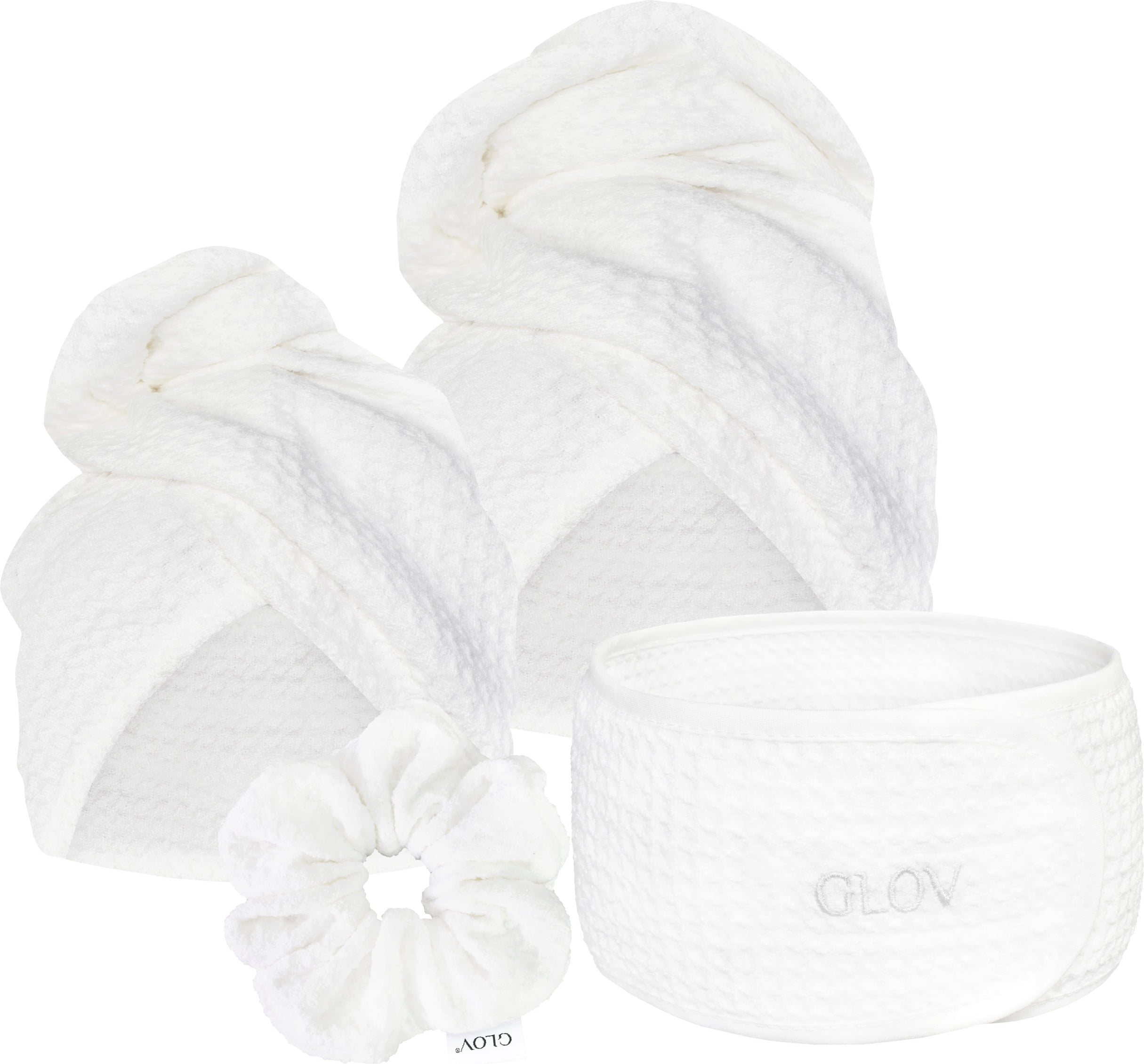 HydroWeave™-setet innehåller fyra högkvalitativa tillbehör som kommer att göra din dagliga skönhetsrutin enklare. Från handduken, som även kan användas som turban, till hårturbanen och ett hårband till den absorberande scrunchien, allt dina hjärtans önskningar ingår. Alla produkter är gjorda av den innovativa HydroWeave™-fibern, som är extremt skonsam mot håret och dessutom särskilt absorberande.