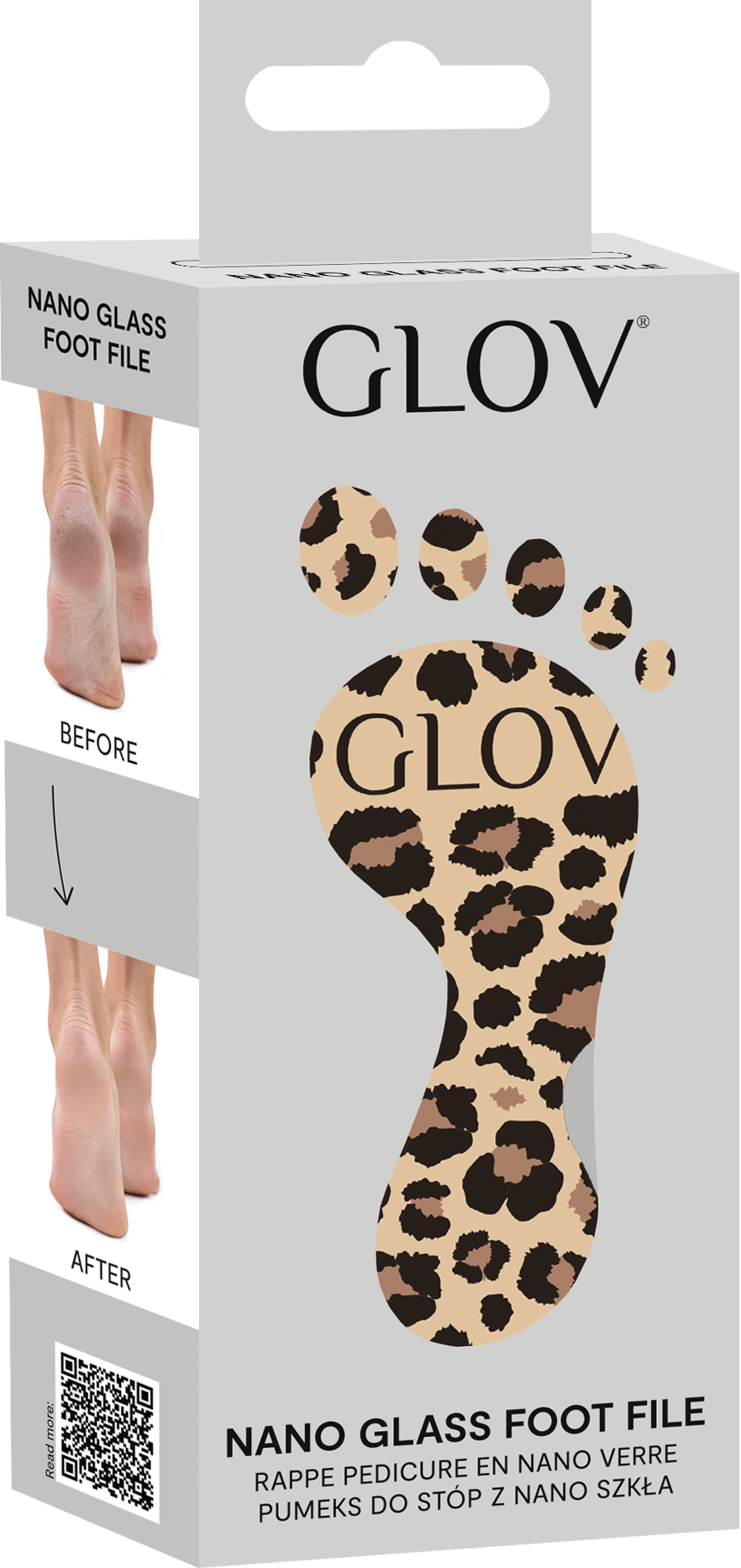 Professionell fotvård hemma har aldrig varit så enkelt! Fotfilen är ett fjäderlätt och snyggt vårdverktyg med innovativ 3D Nano Glass Technology. Det ergonomiska handtaget garanterar bekväm hantering, medan Leo-trycket ger din skönhetsrutin det där lilla extra. Ingen irritation, ingen smärta och inget behov av ytterligare kosmetika. Den kompakta designen gör den också lätt att ta med sig på resan.