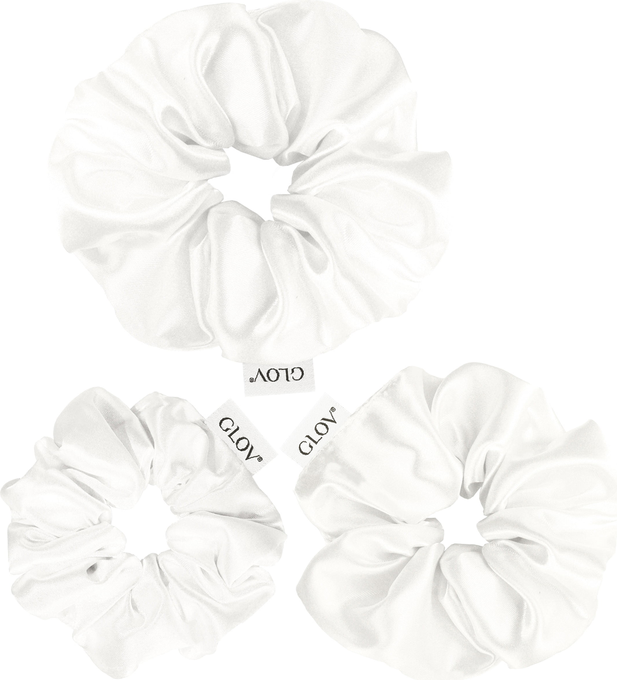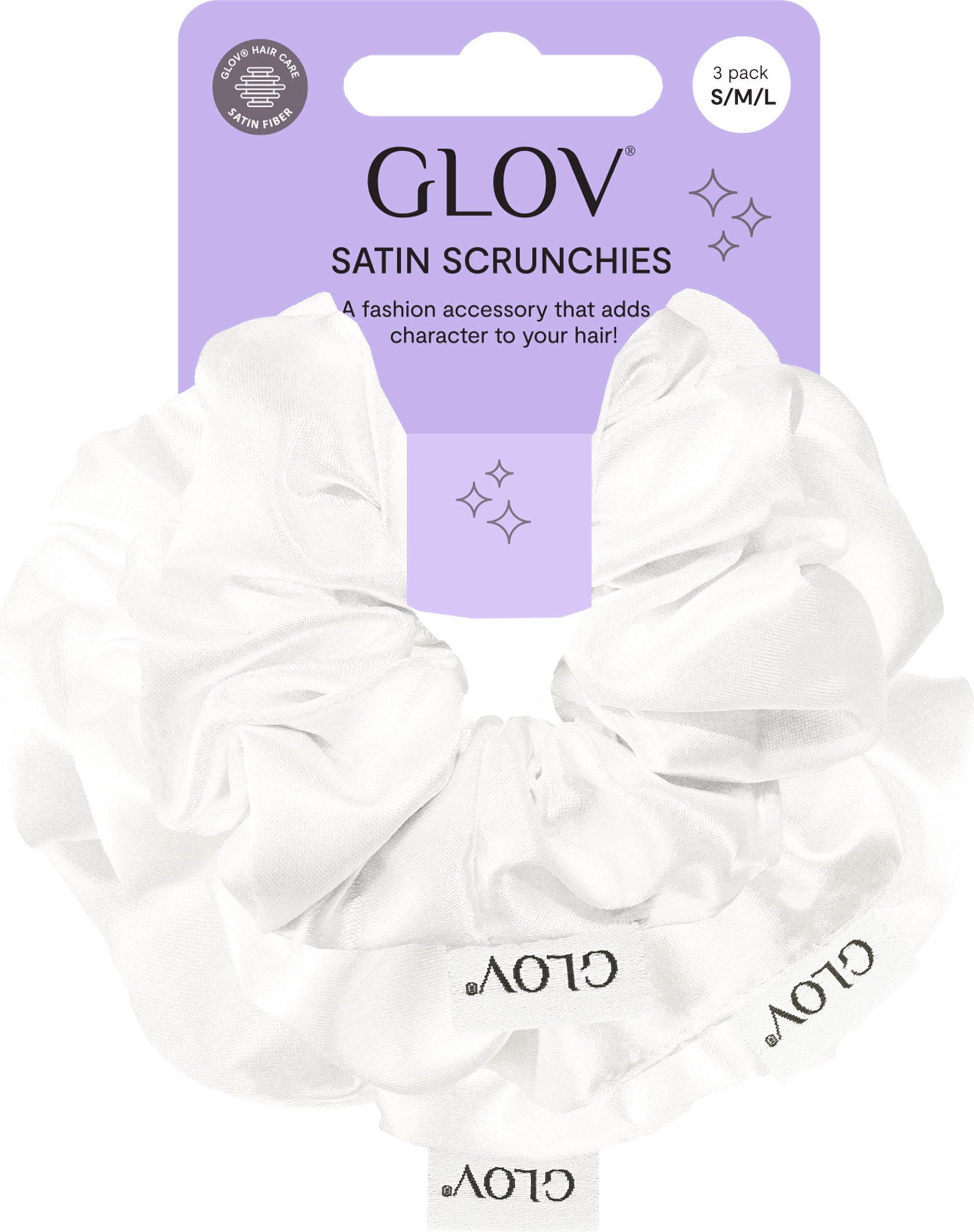 Förpackningen med 3 scrunchies är en härlig present. Den innehåller håraccessoarer i tre olika storlekar och är gjord av lyxig, hårvänlig polyestersatin.