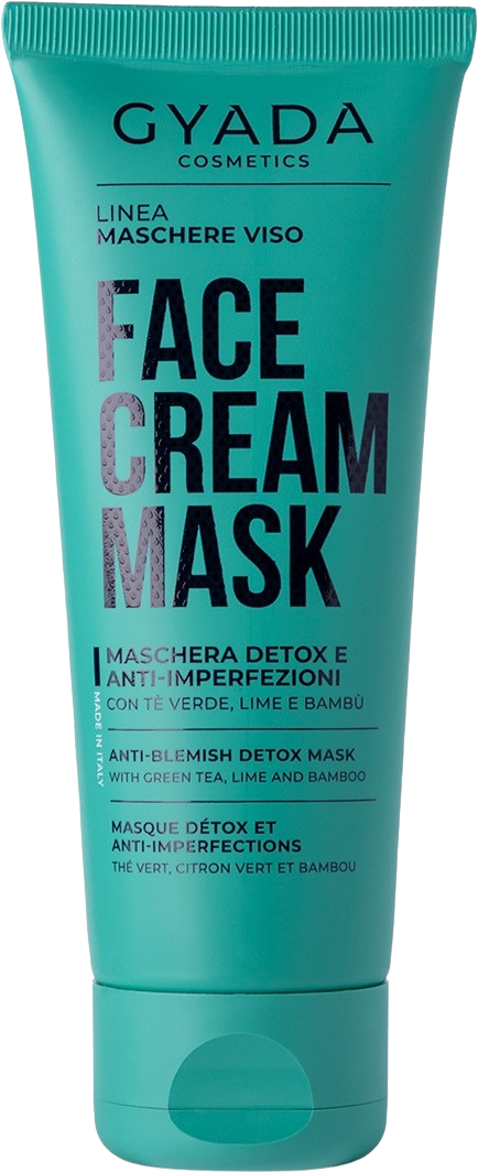 Detoxmasken från GYADA Cosmetics avlägsnar föroreningar och förbättrar huden synligt. Den är perfekt för ren och fet hud som också är stressad av yttre påverkan från smog. Huvudingredienserna grönt te, lime och bambuvatten rengör hudens porer, har en sammandragande och antioxidant effekt. Dessutom innehåller formuleringen niacinamid (vitamin B3) som reglerar talgproduktion. Klorofyll har en naturlig antioxidant och druvkärnolja som skyddar huden från fria radikaler.