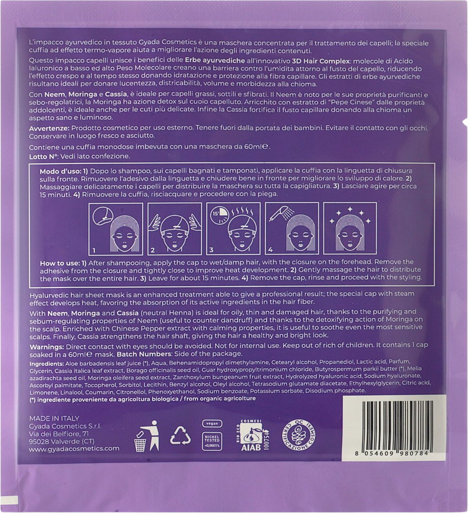 GYADA Cosmetics Hyalurvedic Clarifying Sheet Mask för håret, 60 ml