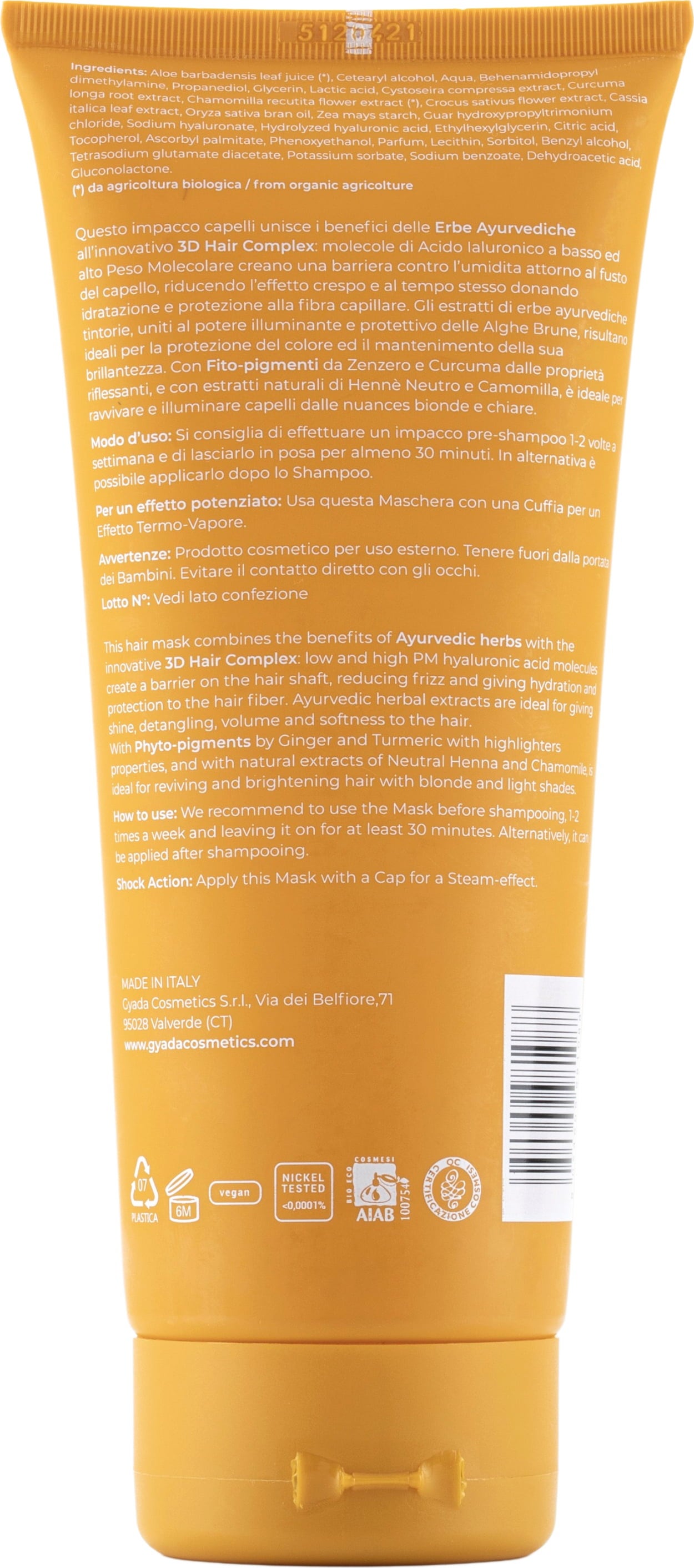 GYADA Cosmetics Hyalurvedisk Hårmask för Färgglans - Gold Hair, 200 ml