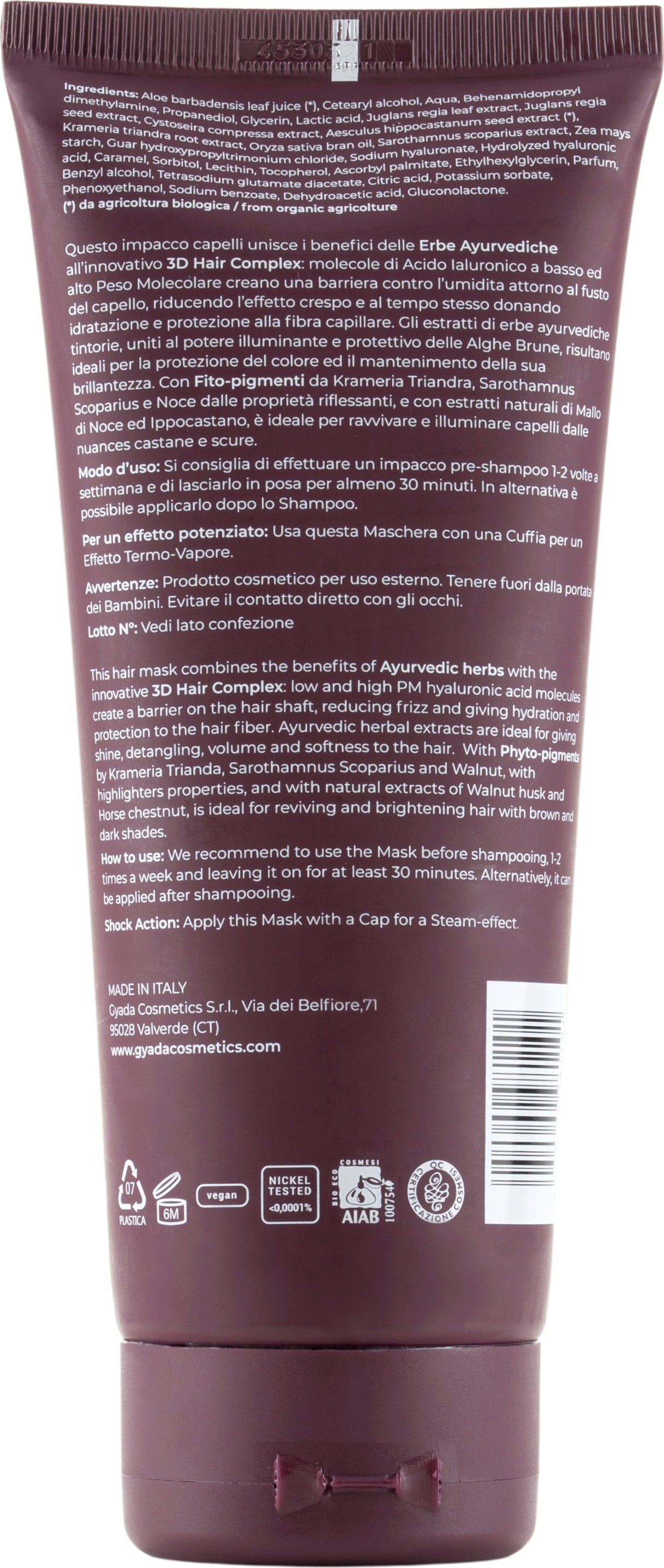 GYADA Cosmetics Hyalurvedisk Färgglans Hårmask Dark Hair, 200 ml
