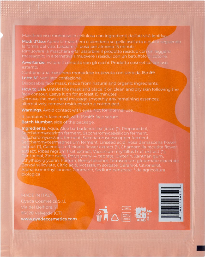 Med denna engångsmask från GYADA Cosmetics ger du känslig hud en speciell behandling! Masken innehåller ett närande och skyddande komplex med vitamin F, svarta vinbär och blåbär! Bara en applicering räcker för att fräscha upp huden och lämna den strålande och silkeslen!