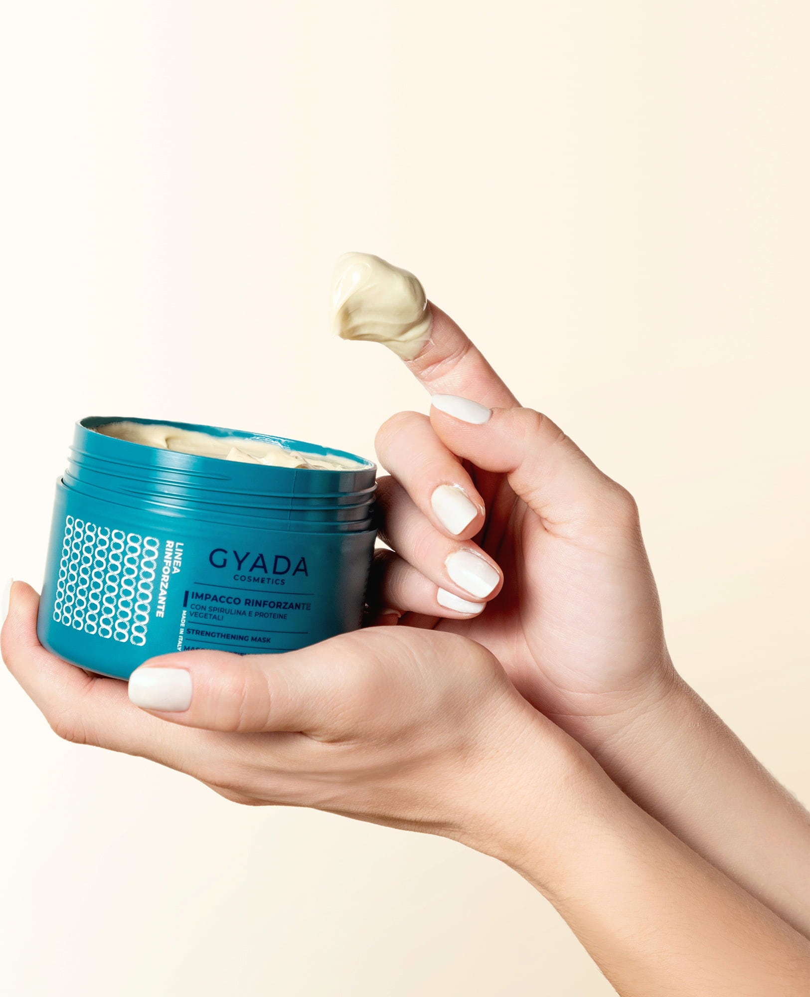 Denna hårmask från GYADA Cosmetics är ett koncentrat av aktiva ingredienser som remineraliserar och återupplivar sprött, skadat och tunnare hår. Den återställer styrkan, stärker och polerar hårfibern och kan förhindra att kluvna toppar bildas. Produkten innehåller en koncentrerad booster av växtbaserade ingredienser som spirulina (alger rika på vitaminer, aminosyror och mineralsalter), havre, ginseng, åkerfräken, vete- och sojaproteiner samt aloe vera och växtoljor.