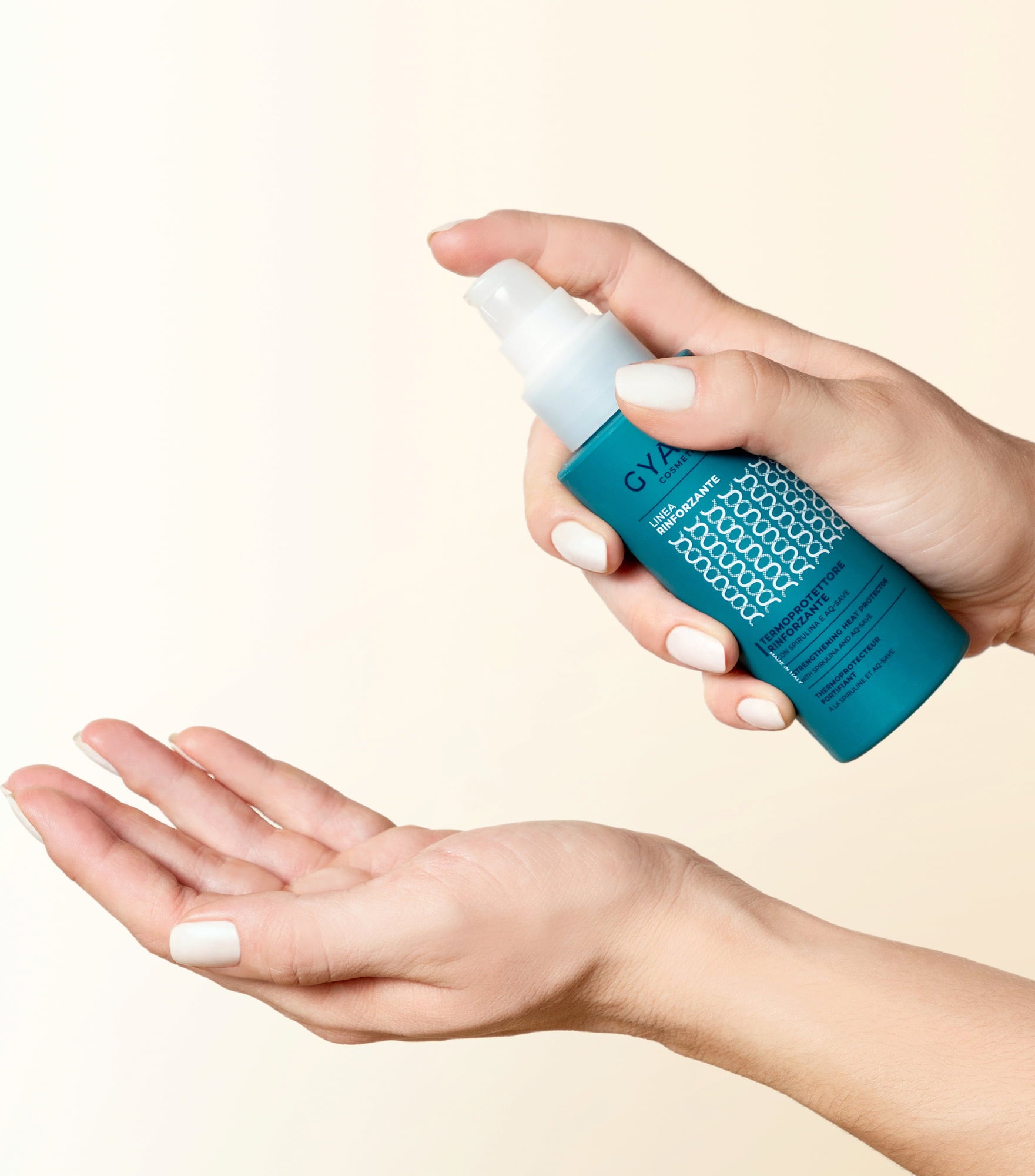 Detta värmeskydd formulerades med Spirulina och AQ-Save, en innovativ aktiv ingrediens tillverkad av italienska ekologiska kastanjer. Detta bildar en skyddande film på håret och förbättrar därmed fuktbalansen - även om håret utsätts för extremt stressande behandling, såsom hårtork eller plattång, eller skadliga miljöpåverkan som klor, vatten, vind och hav. Dessutom har formuleringen en omstruktureringseffekt tack vare spirulina, havre, hästsvans och ginseng.