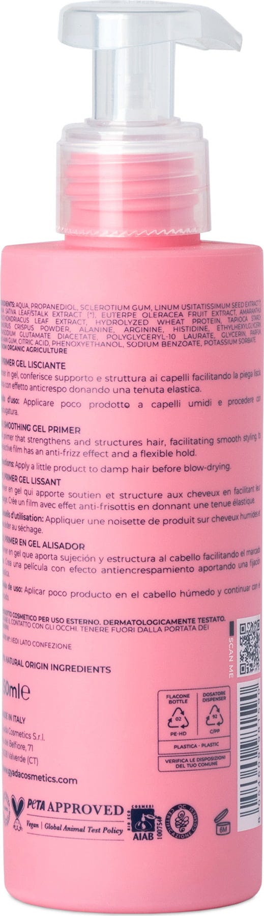 Primer Gel innehåller extrakt från lin, havre, acai och amaranth. Den stöder och strukturerar stylingen av rakt hår, erbjuder en anti-frizz-effekt och säkerställer ett elastiskt fäste.