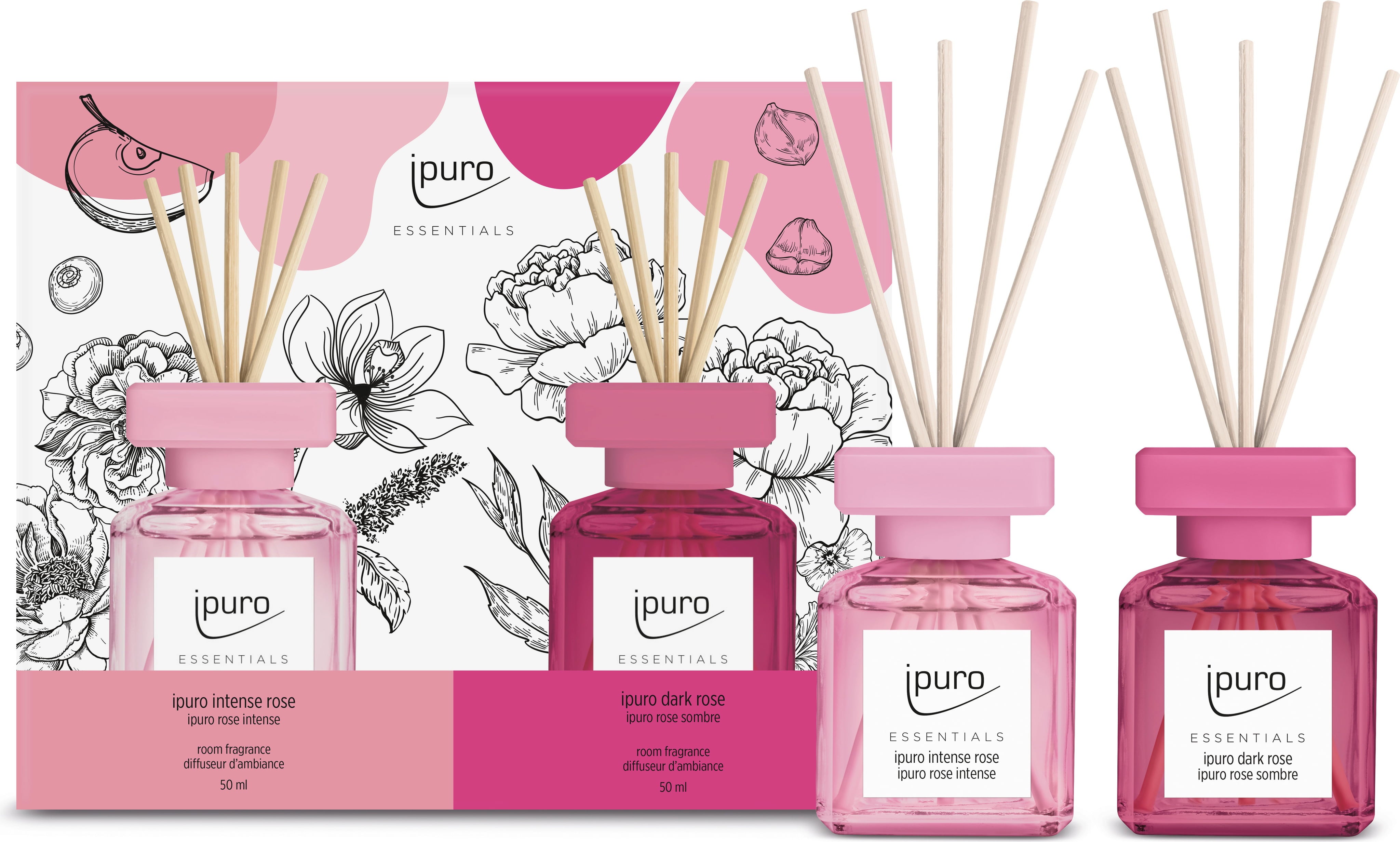 Detta set innehåller de två rumsdofterna Intense Rose och Dark Rose från ipuro. Dessa rumsdofter sprider omedelbart en intensiv blommig doft i hela ditt vardagsrum. Setet är också perfekt som present.