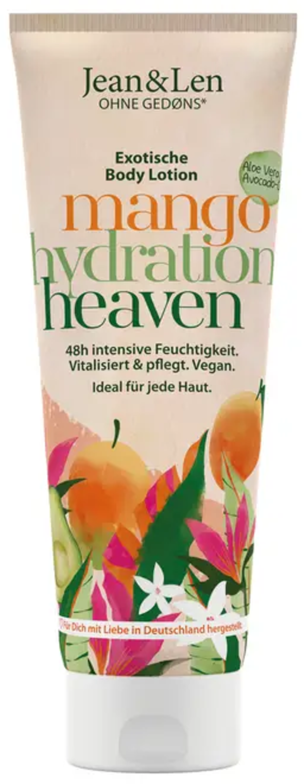 Med den snabbabsorberande mango/avocado body lotion från Jean&Len kan du njuta av ett underbart hudvårdsmoment som får din hud att stråla på nolltid. Den återfuktande formulan skämmer bort dig med provitamin B5 (panthenol), avokadoolja och vegetabiliskt glycerin och gör att huden känns mjuk.