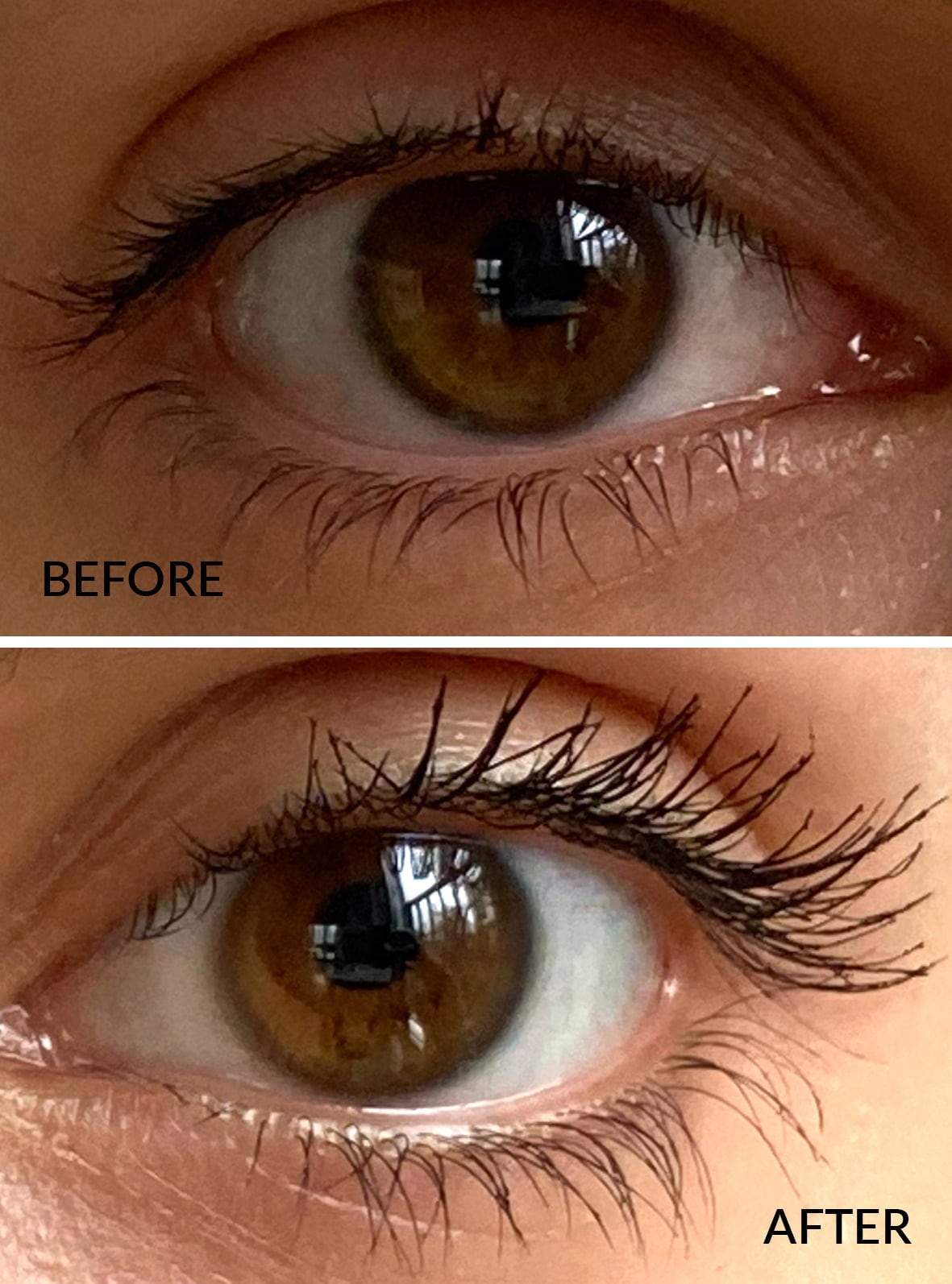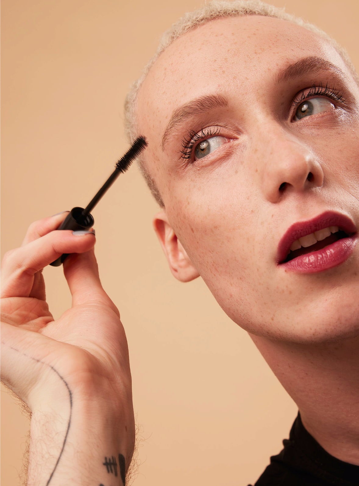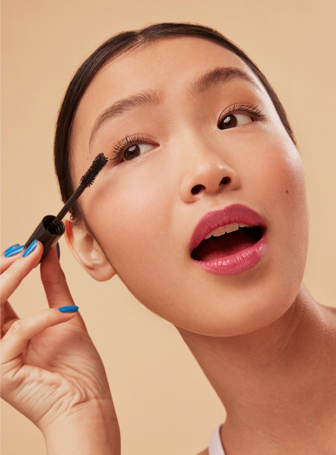 Sätt borsten vid fransraden och dra den i små sicksackrörelser ut mot topparna tills alla fransar är täckta. För extra intensitet, upprepa appliceringen efter en kort torktid.