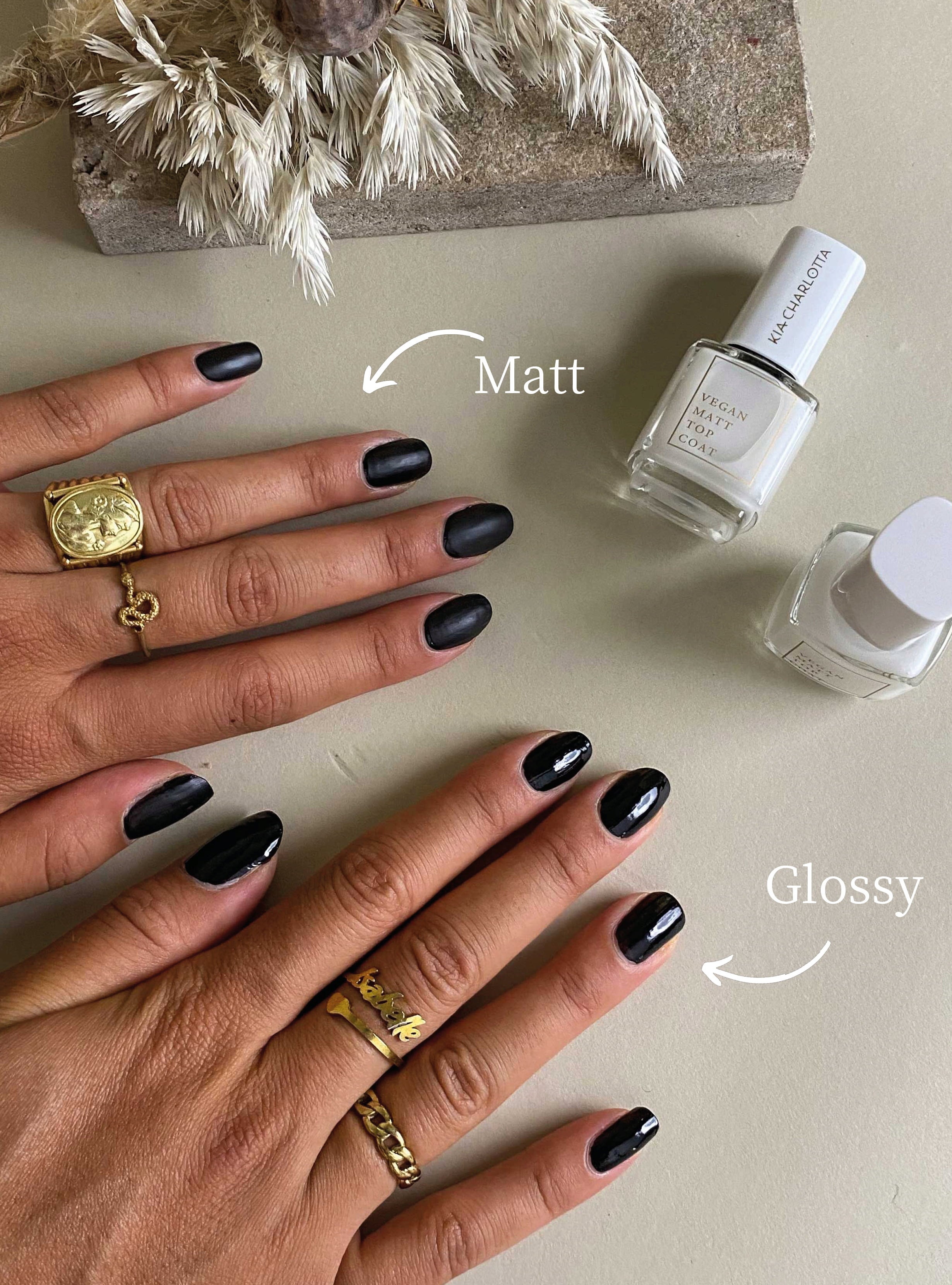 Matt Top Coat fungerar som ett matt överlack som ger din manikyr en sofistikerad matt look samtidigt som den skyddar nagellacket med en sammetslen yta. Ett lager av det veganska överlacket räcker för att förvandla vilken färg som helst till en unik blickfångare.