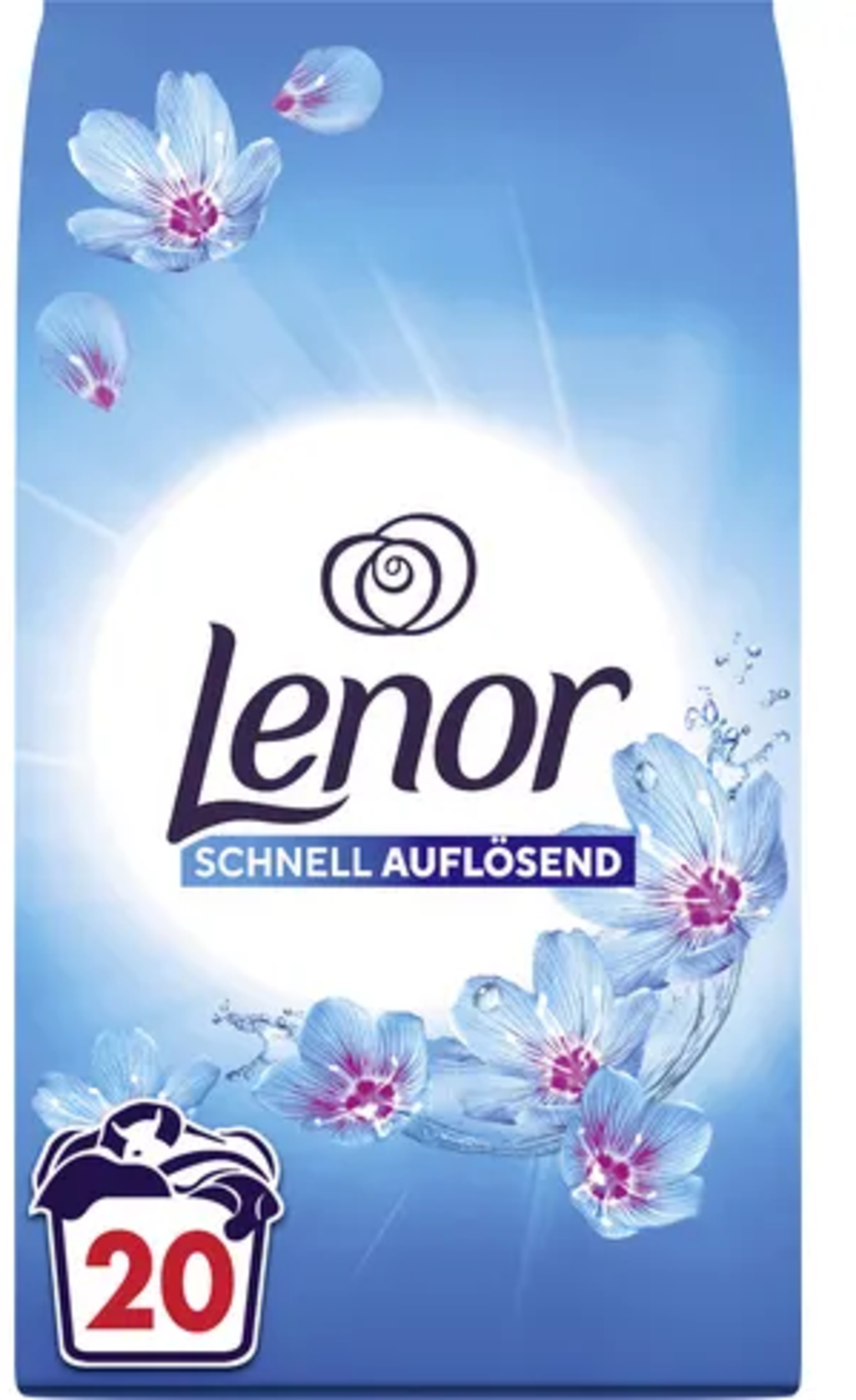 Detta tvättpulver från Lenor har en snabbupplösande formulering så att det blir aktivt omedelbart vid kontakt med vatten och förhindrar irriterande pulverrester. Det tränger djupt in i textilfibrerna och avlägsnar enkelt smuts, fläckar och obehagliga lukter, även vid låga tvättemperaturer från 20 °C! Du kan inte bara se fram emot en helt ren tvätt med en härligt fräsch doft, utan du kan också spara upp till 60 % el och minska dina koldioxidutsläpp med de kallare tvättprogrammen!