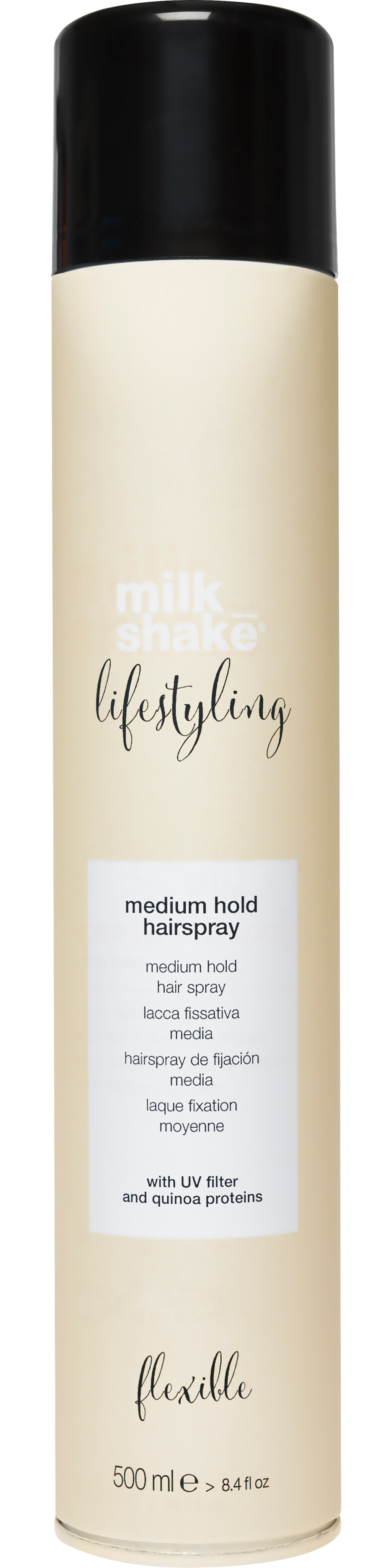 Hårsprayen milk_shake Lifestyle Medium Hold fixerar din frisyr med en medium, flexibel stadga som ger ditt hår rörelsefrihet utan att torka ut det eller göra det klibbigt. Looken sitter kvar även under förändrade förhållanden. Den lätta formulan är också berikad med UV-filter och quinoaproteiner för att skydda hårfärgen från att blekna. Samtidigt behåller ditt hår en naturlig, mjuk känsla och vacker glans – perfekt för looks som behöver hålla hela dagen utan att se stela ut.
