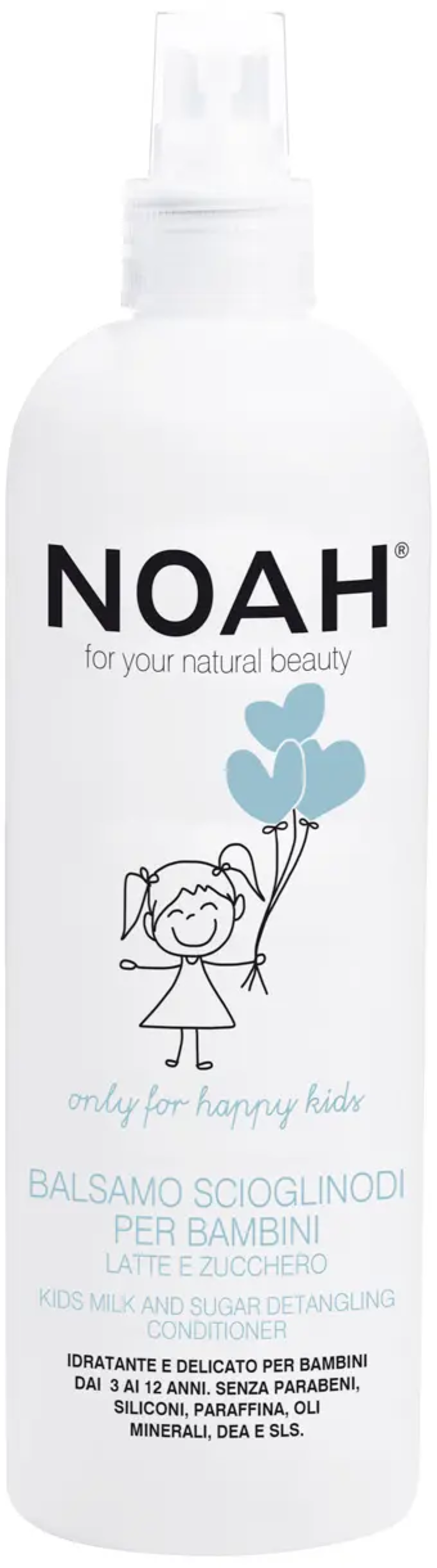 Kids Detangling Conditioner från Noah ser till att barnens hår blir mjukt och återfuktat. Tack vare den lätta formuleringen med socker och mjölkproteiner hjälper balsamet särskilt till att reda ut långt och tunt hår.