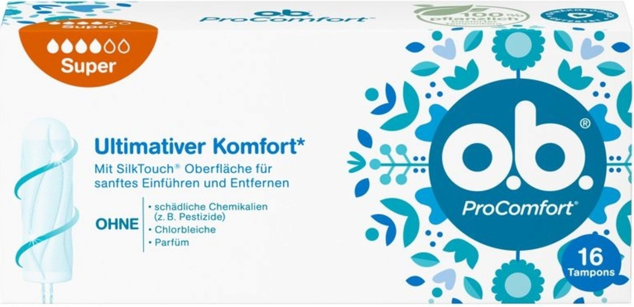 Med SilkTouch®-ytan kan o.b.'s ProComfort Super tamponger sättas in och tas ut försiktigt. De ger ett pålitligt skydd under kraftiga perioder. De sammanfogade spåren fördelar effektivt vätskan inuti tampongen.