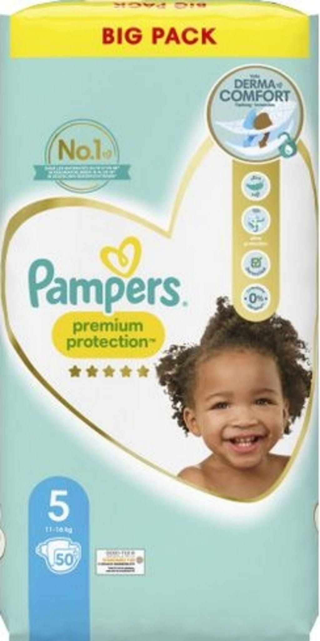 Pampers Premium Protection-blöjor 5 passar barn som väger 11 till 16 kg.