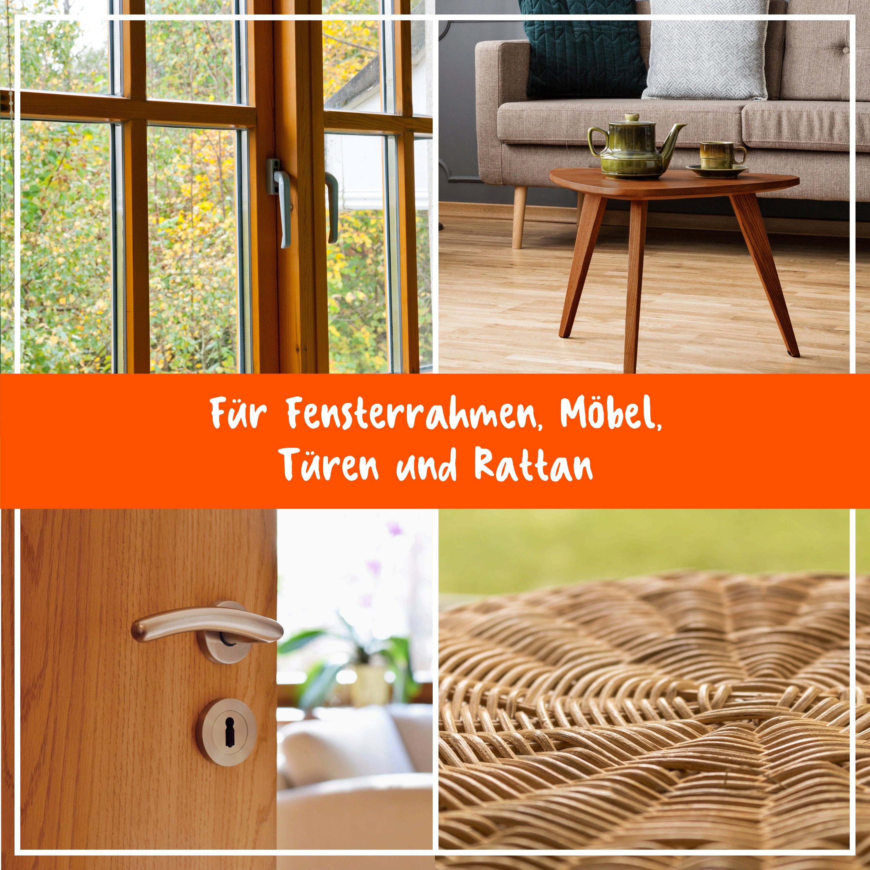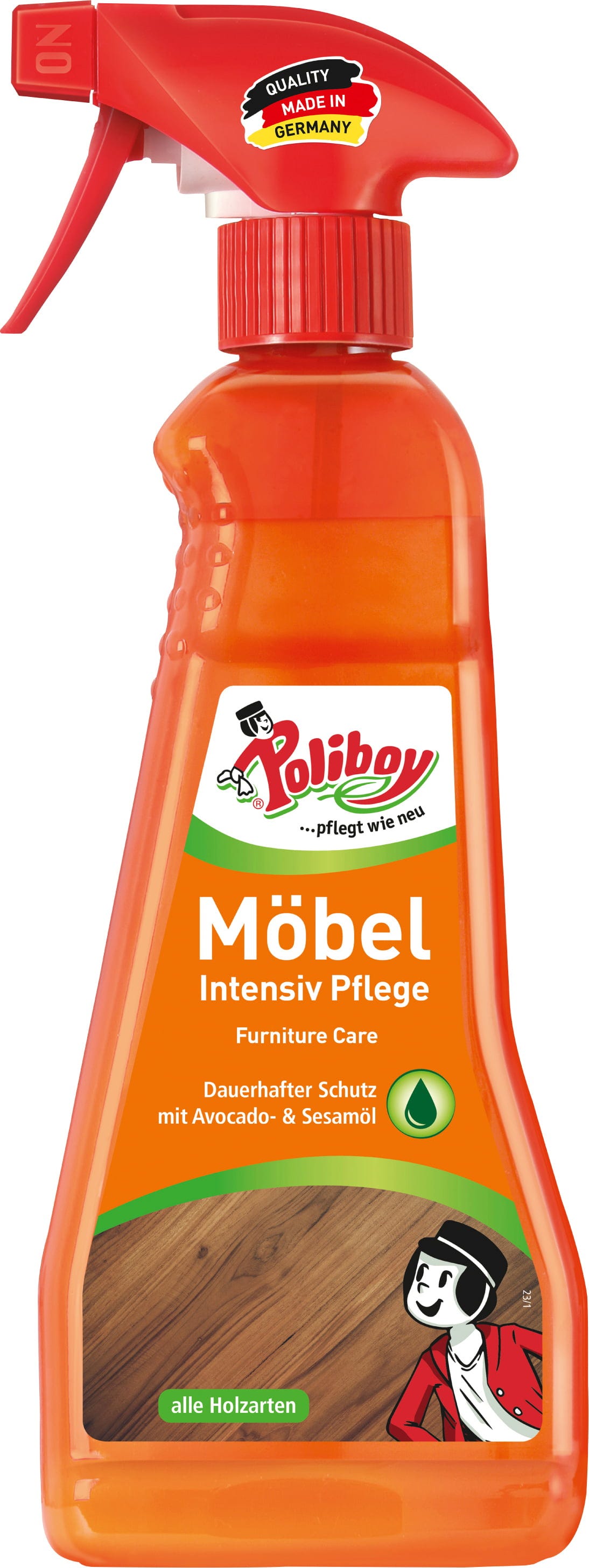 Poliboy Intensive Furniture Care skyddar lackerat trä mot skador som orsakas av dagligt slitage och mot blekning på grund av solljus. Formulan är baserad på en intensivvårdande kombination av sesam- och avokadoolja, som inte bara tar bort smuts och fläckar från ytor utan också ger dem en vacker glans. Även möbler, dörrar, skåp, hyllor, bord eller rottingkorgar som börjar bli till åren kommer att se ut som nya igen.