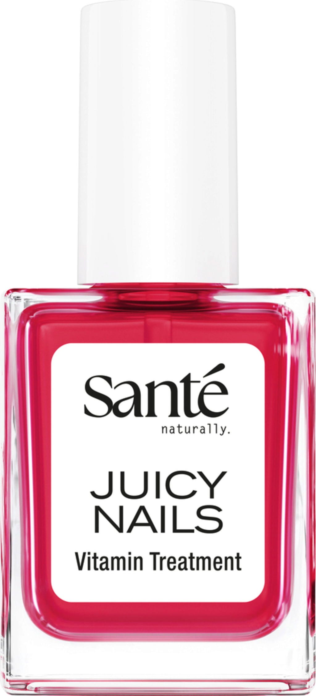 Juicy Nails erbjuder en kombination av färg och vård. Som ett hybridlack med en gelliknande formula vårdar det som en behandling och ger samtidigt oemotståndliga färger med en glansig finish. Dess formula med mandelolja, E-vitamin och selleriextrakt skyddar naglarna och torkar snabbt. Den ger en slät yta, döljer små ojämnheter och har även stärkande egenskaper.