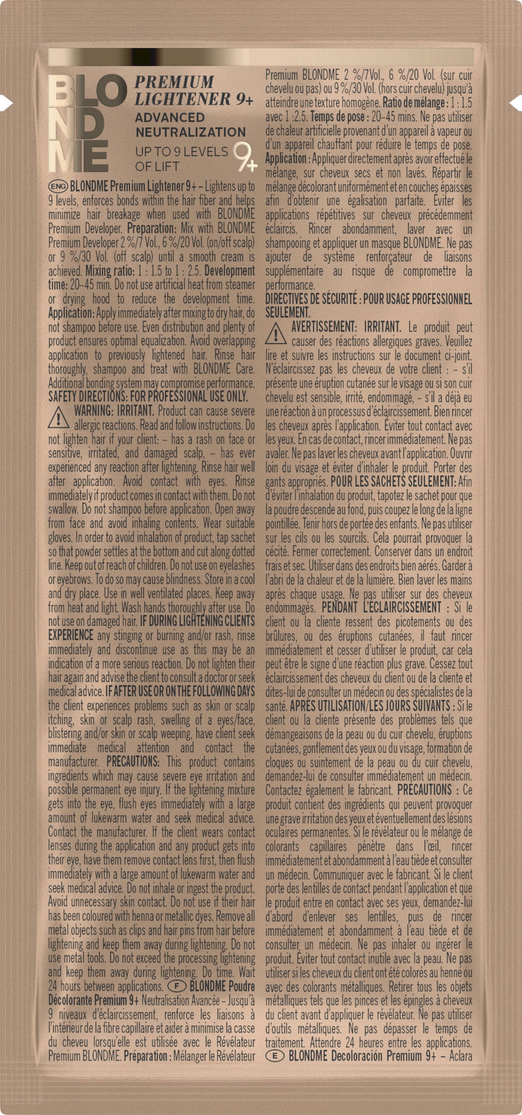 Upplev en imponerande ljusning på upp till nio nivåer, även med de mörkaste startbaserna. De anti-gula ingredienserna säkerställer förbättrad neutralisering av varma undertoner. Det är det perfekta valet för alla tekniker och utgångsbaser och ger dig klara, svala blonda resultat!