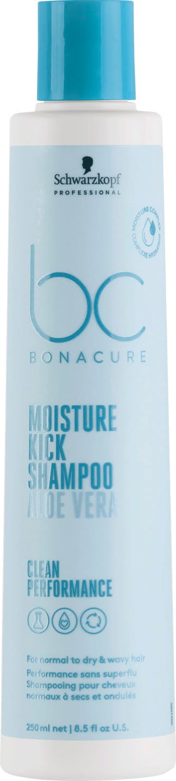 Har ditt normala, torra eller lockiga hår tappat sin styrka och energi och känns glanslöst eller frissigt? Bonacure Moisture Kick Shampoo från Schwarzkopf Professional ger både rengöring och intensiv återfuktning!