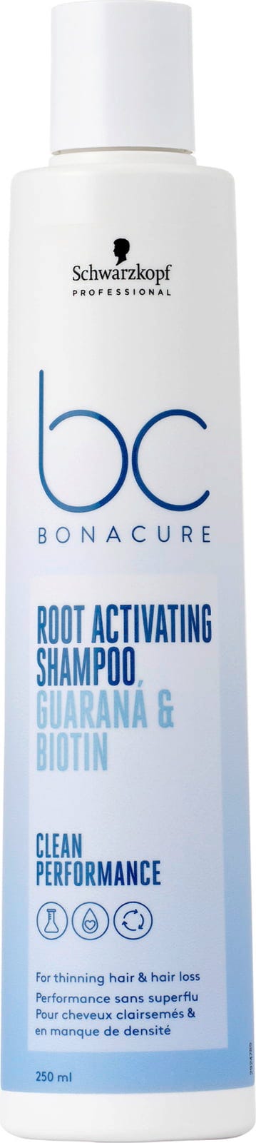 Vill du stärka ditt tunnare hår och ge det nytt liv? Bonacure Root Activating Shampoo från Schwarzkopf Professional är ett aktiverande schampo som verkar direkt vid hårroten! Den sulfatfria formulan är berikad med ett kraftfullt duo-komplex av koffeinrikt guarana och stärkande biotin.