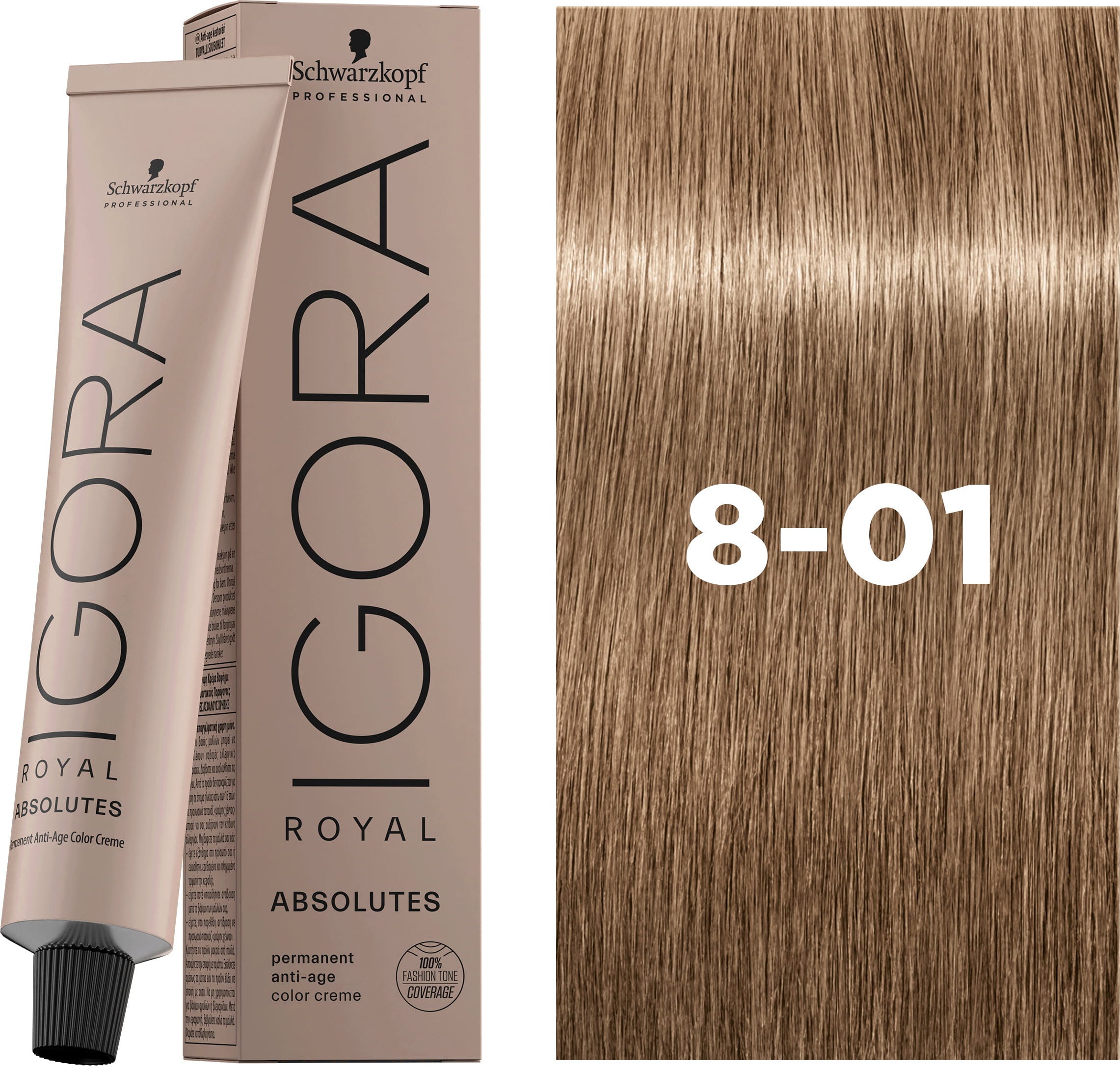 Schwarzkopf Professional IGORA ROYAL Absolut hårfärg, 8-01 Ljusblond Naturlig Cendré (60 ml)