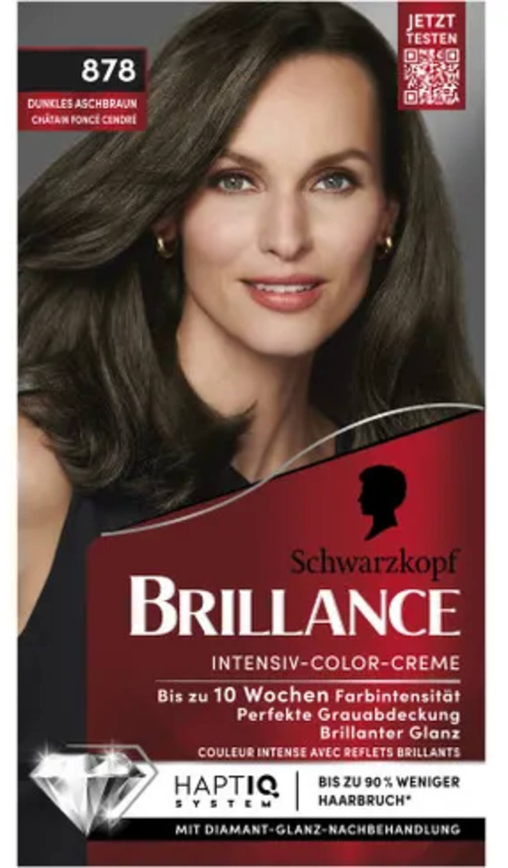 Schwarzkopf Brillance Intensiv Färgkräm, 878 mörk askbrun