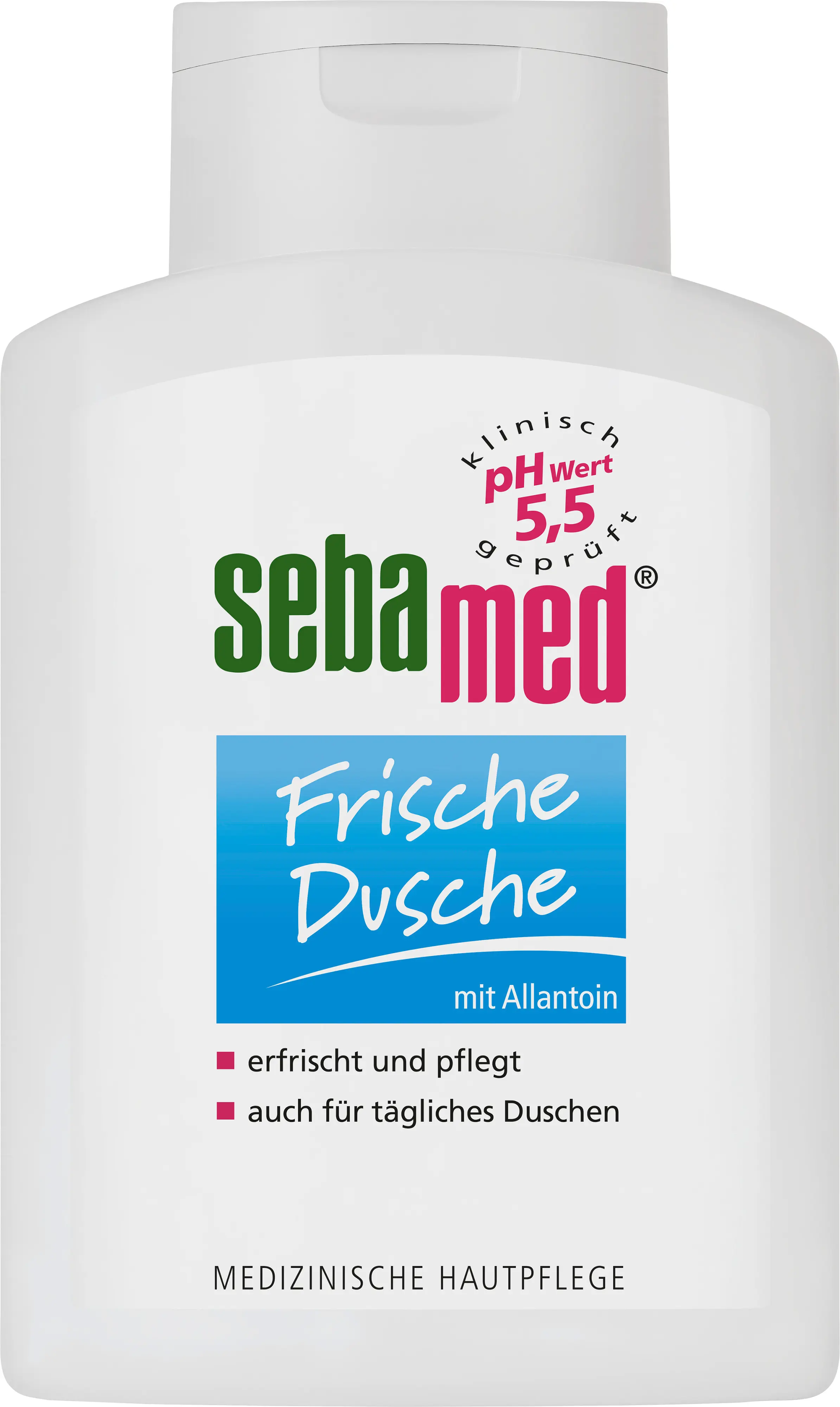 Fresh Shower Gel från sebamed har samma pH-värde som huden, 5,5, och stödjer därför hudens naturliga skyddsbarriär. Den milda och uppfriskande formulan med allantoin och mjölksyra rengör varsamt huden och ger nödvändig fukt. Den är lämplig för daglig användning på känslig hud.