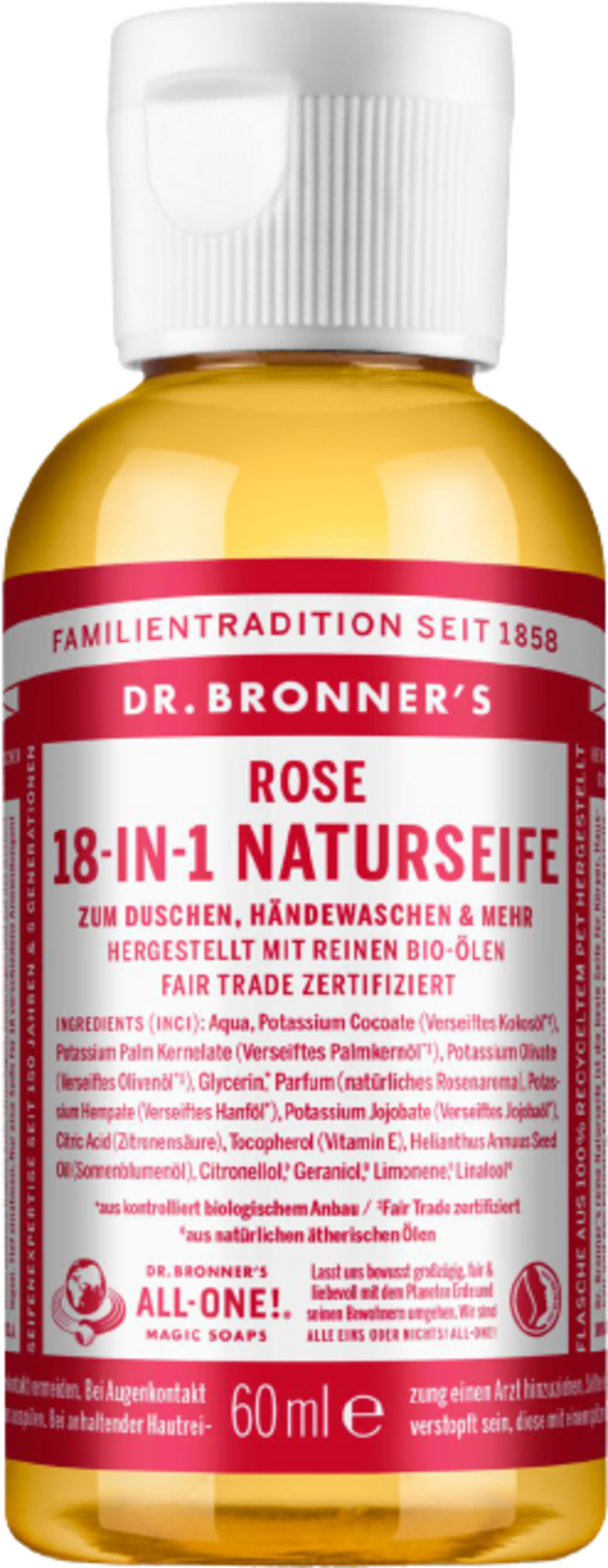 Dr. Bronner's 18i1 Naturtvål Ros, 60 ml