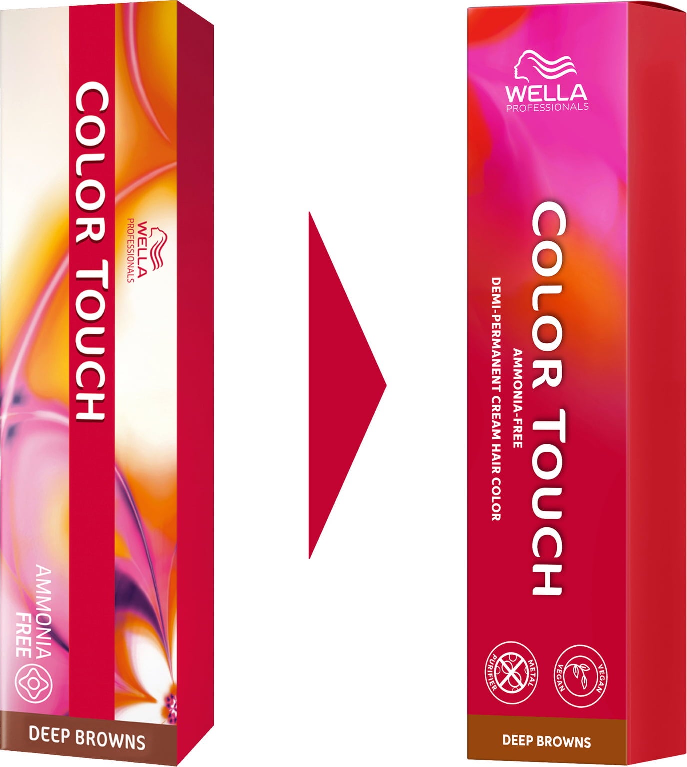 Color Touch Deep Browns ger dig fylliga bruna toner med unik glans för upp till 28 hårtvättar. De demi-permanenta intensiva nyanserna förlitar sig också på den oslagbara Metal Purifier Technology för att göra färgresultatet ännu mer levande. Den veganska formulan är fri från ammoniak, silikoner och mineralolja.