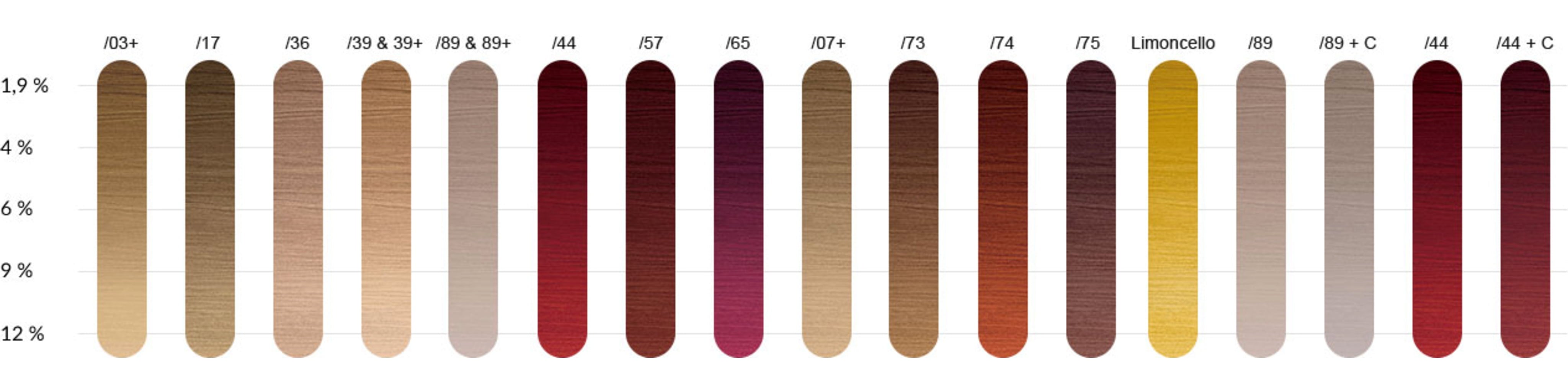 - Rekommenderade blandningsförhållanden för mycket subtila resultat (artificiella färgövergångar): 1 : 1,5 med Color Touch Emulsion 4%, 9% och Welloxon Perfect Pastel.