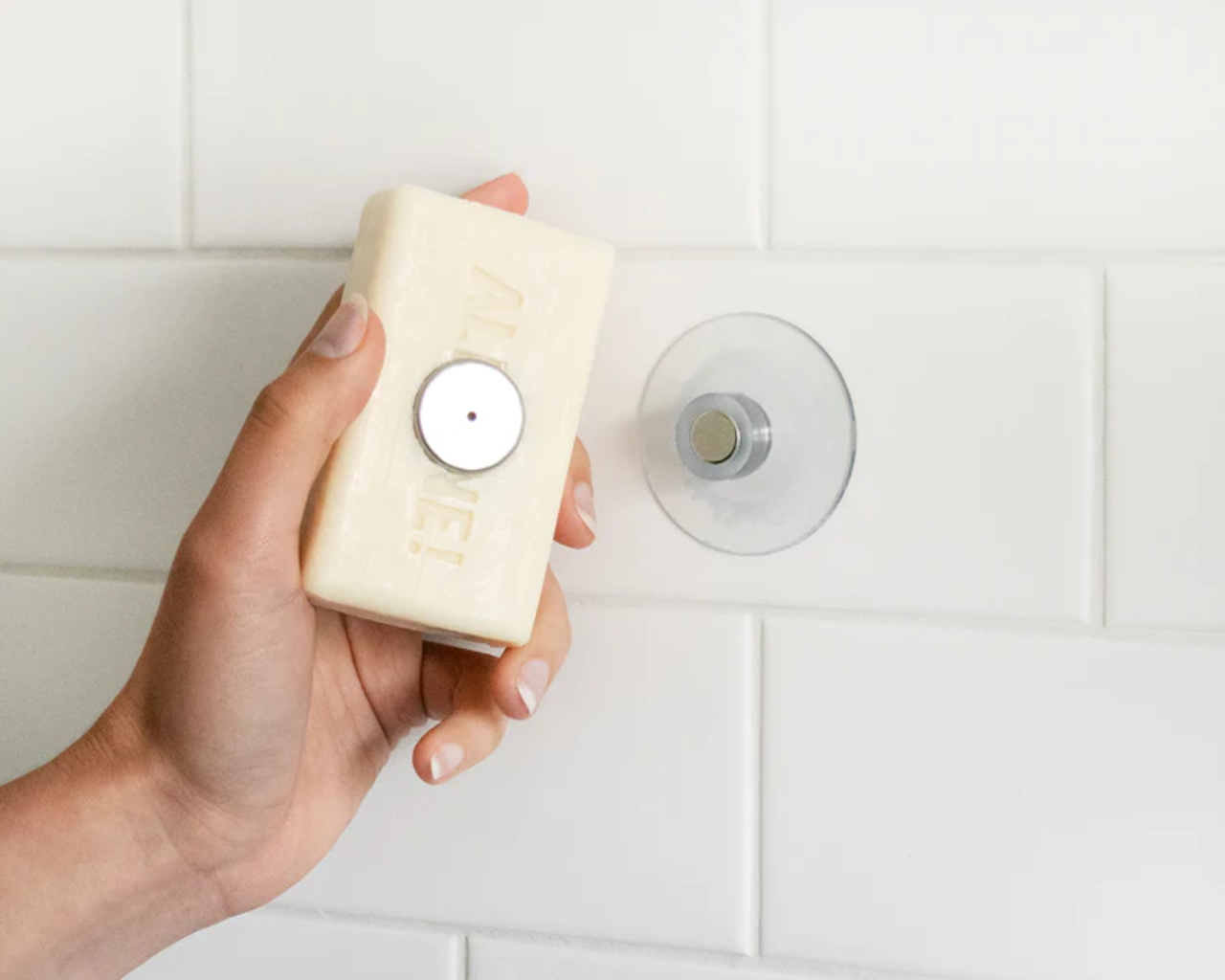 Detta set innehåller en magnetisk tvålhållare och en hudvänlig tvål. Den praktiska och mångsidiga tvålhållaren kan hängas bredvid handfatet eller i duschen. Så du har alltid din favorittvål till hands och den kan torka optimalt. Detta är inte bara mer hygieniskt, utan förlänger också livslängden på din tvål. När den är slut trycker du bara in metallplattan i nästa tvål. Magnethållaren med sugkopp kan tas bort och hängas någon annanstans så ofta du vill.