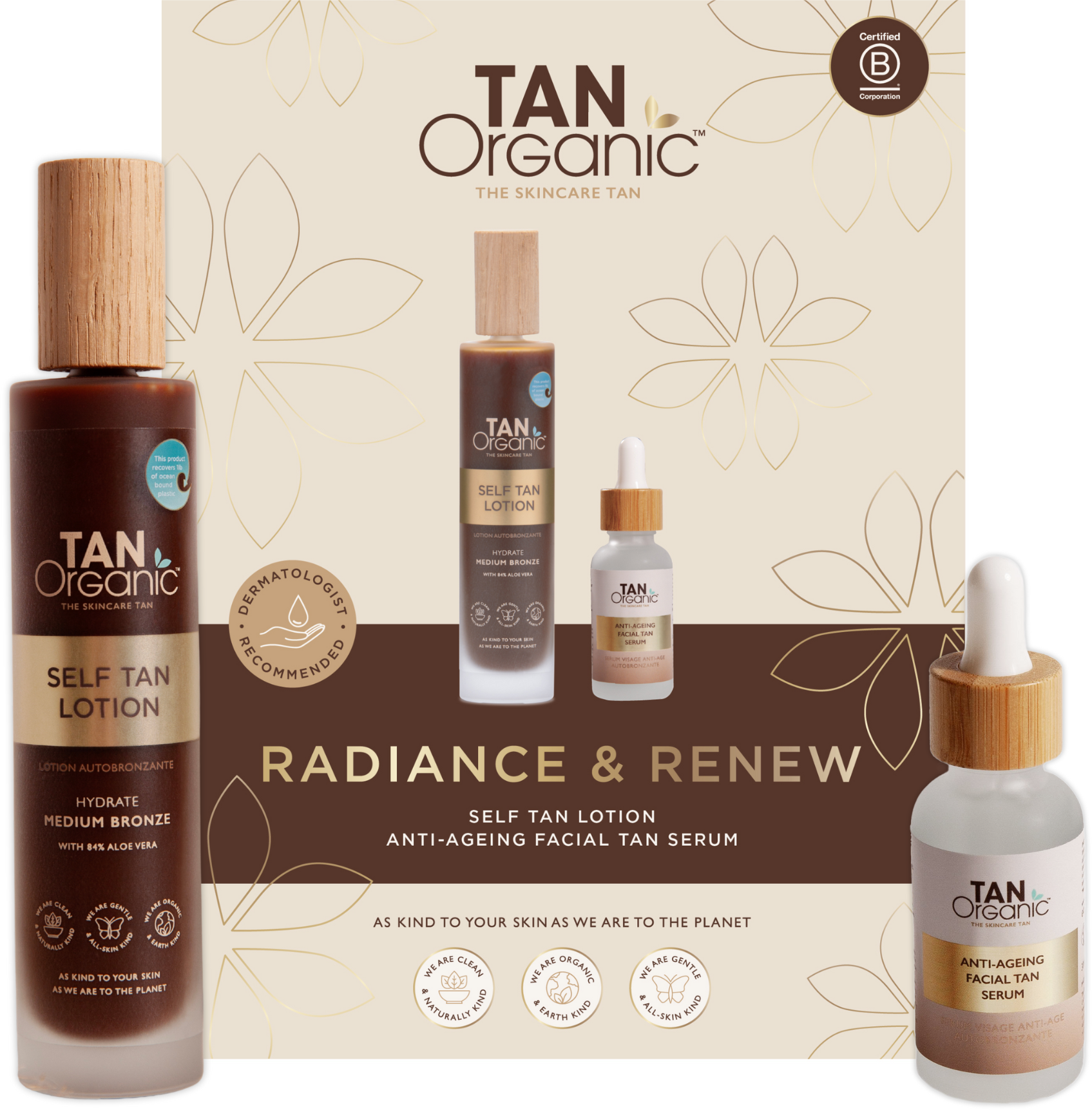 Ge bort gåvan av bortskämd vård för en strålande hy med denna duo! Self Tan Lotion ger en felfri, naturlig solbränna med långvarig återfuktning, medan Anti-Aging Facial Tan Serum bortskämer hyen med en gradvis, solkysst lyster och hudåtstramande egenskaper. Tillsammans skapar de en strålande finish som känns lika bra som den ser ut – den ultimata självvårdsrutinen!