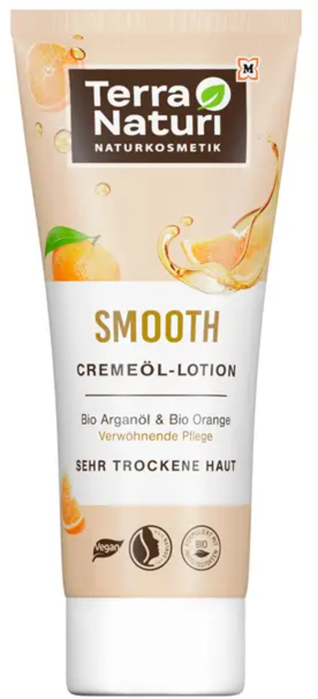 Den vårdande SMOOTH kräm-oljelotionen med ekologiska argan-, kokos-, shea- och apelsinextrakt ger huden en extra dos fukt och säkerställer smidighet.