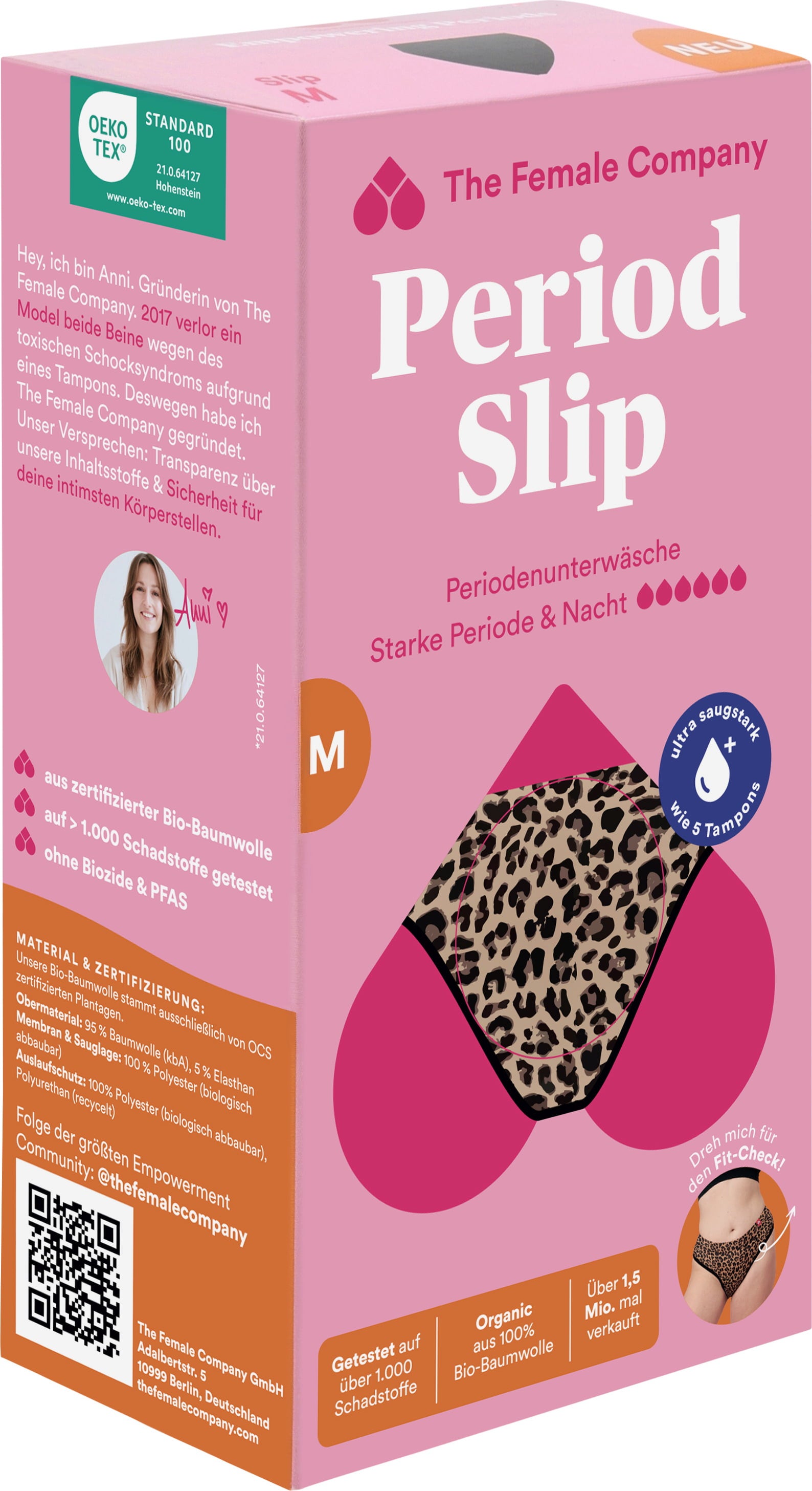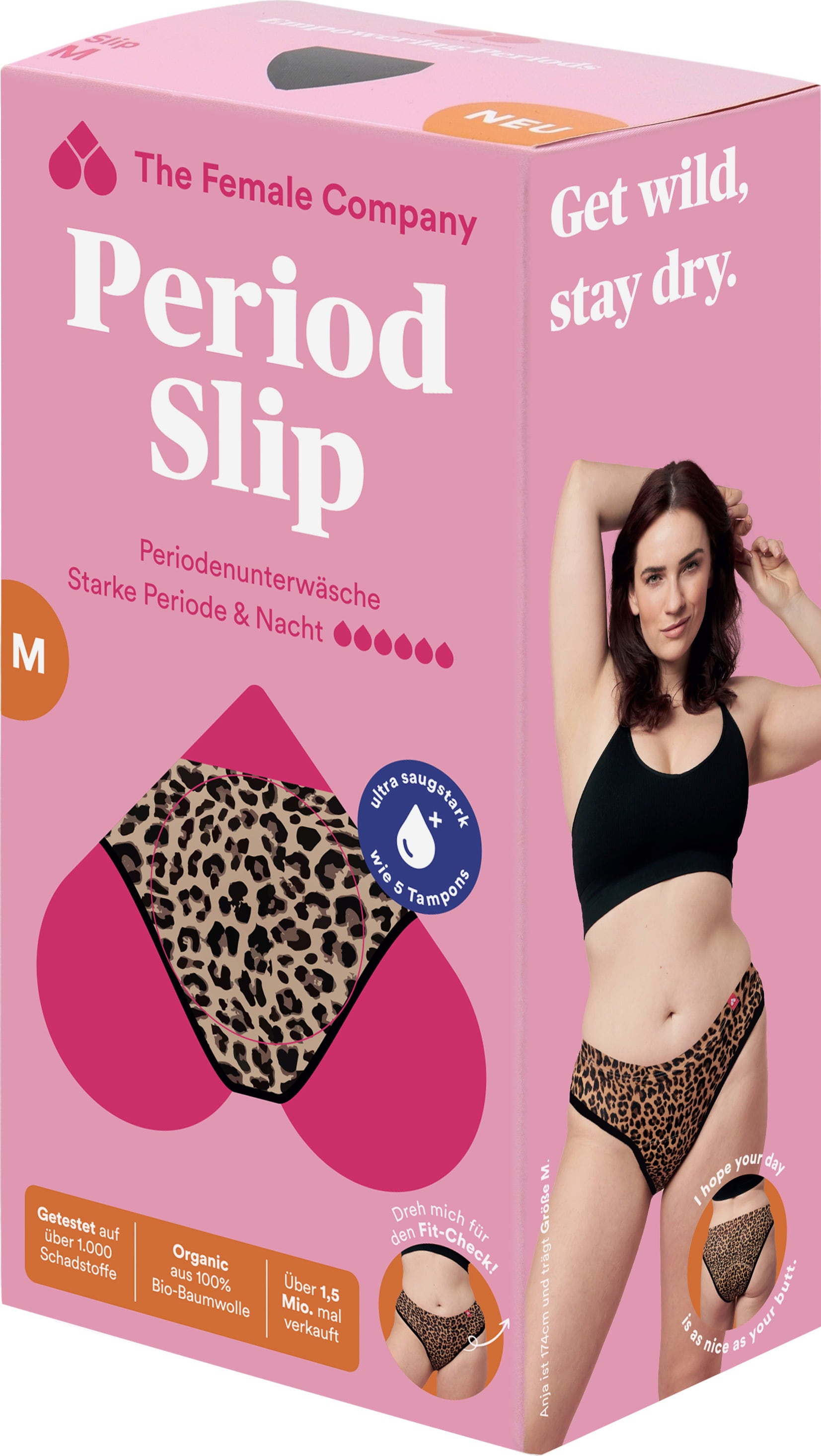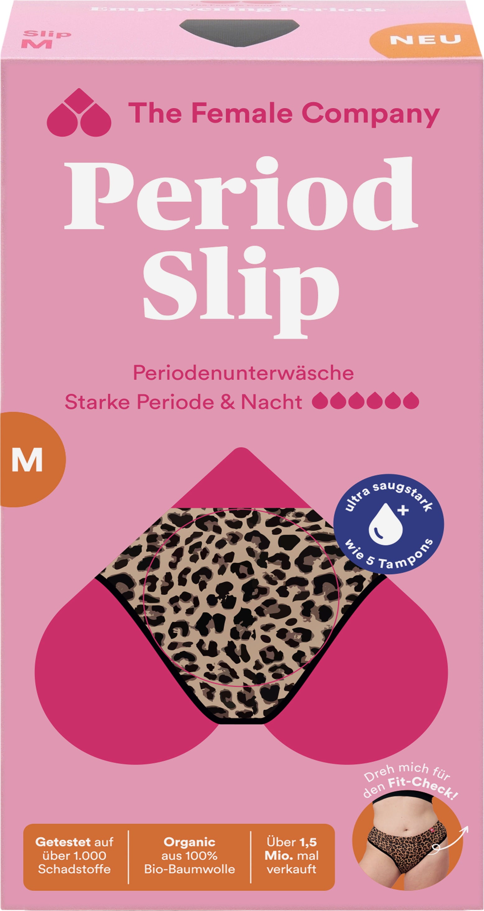 Menstrumpor i leopardmönster är extra absorberande och snabbtorkande – vilket gör dem till den perfekta partnern under rikliga menstruationer. Tack vare sin innovativa Fluid Protection®-teknik erbjuder de också effektivt läckageskydd och är bara 1 mm tjockare än vanliga trosor.