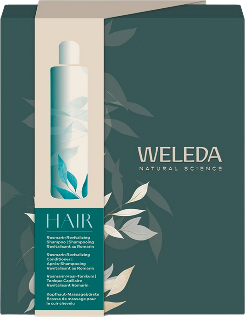Rosmarinsetet erbjuder naturlig hårvård med en vacker glans - lämplig för alla hårtyper och känslig hårbotten. Det innehåller tre återupplivande kosmetikaprodukter och en gratis hårbottenborste för avslappnande massage.