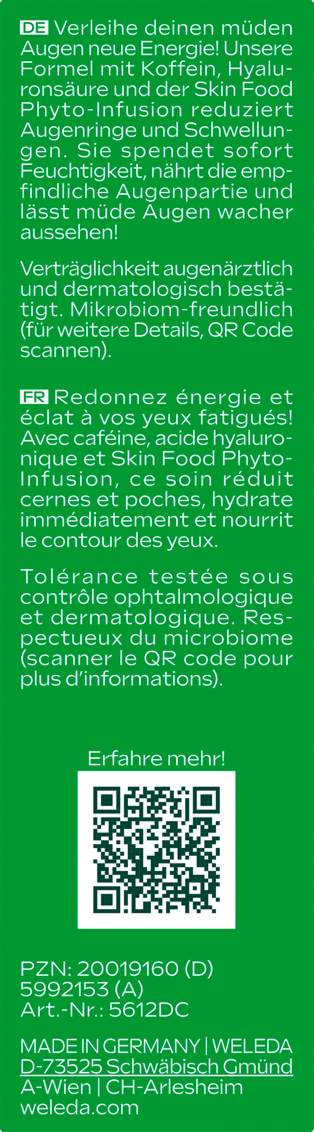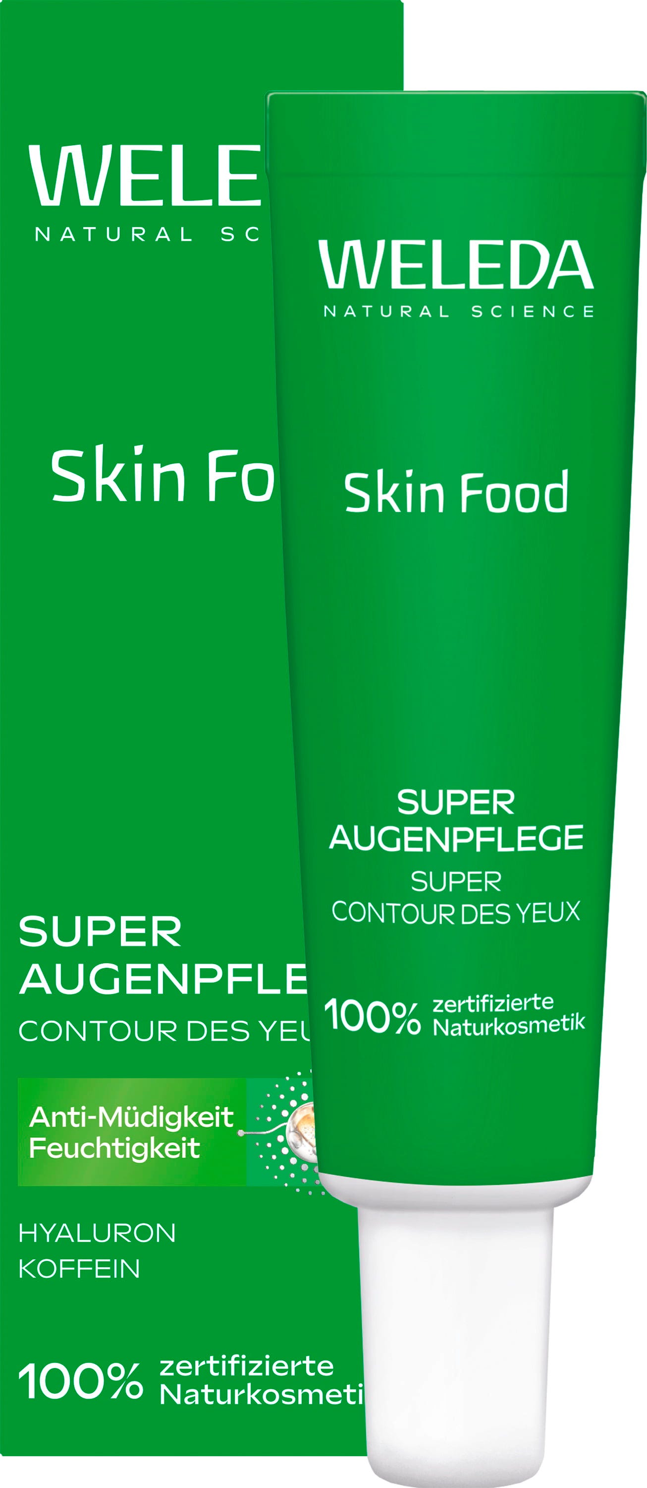Super Eye Cream från Skin Food-serien återupplivar trötta ögon. Tack vare sin formula med koffein, hyaluronsyra och Skin Food Phyto-Infusion återfuktar och ger den näring åt den känsliga huden runt ögonen. För ett fräschare och mer uppfriskat utseende!