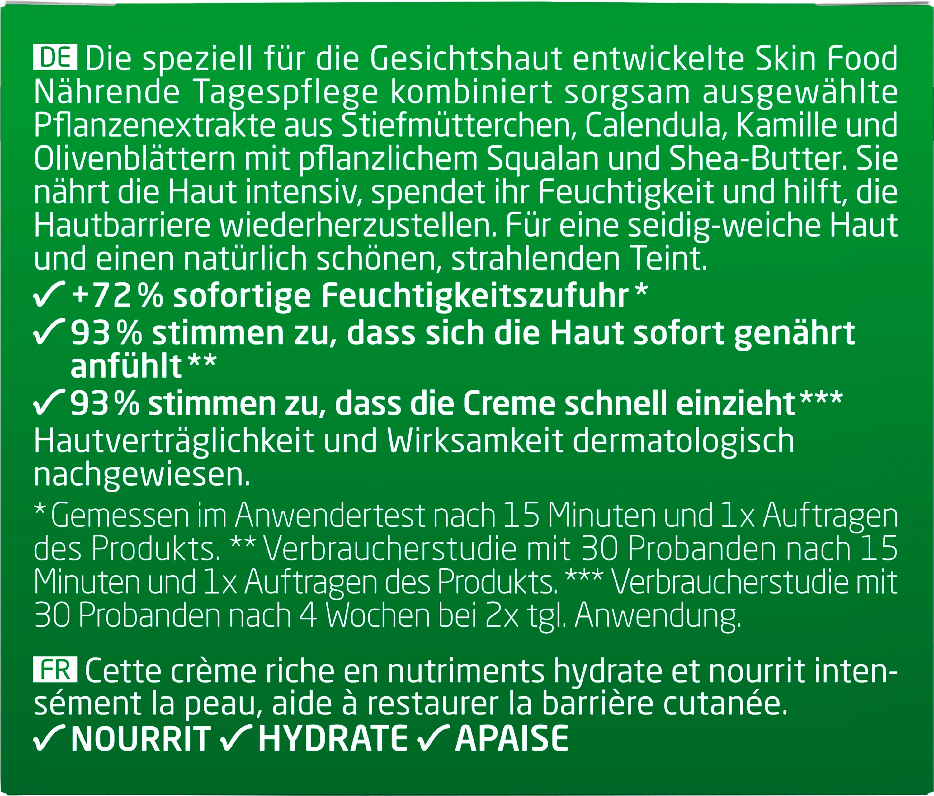 Speciellt utvalda växtextrakt från ringblomma, kamomill och pensé möter växtbaserad squalan från olivblad i formuleringen av denna dagvård och säkerställer en optimal tillförsel av näringsämnen. Med sheasmör som bas ger den snabbt absorberade vården omedelbart din hud tillräckligt med fukt och återställer hudens skyddande barriär. Din hy kommer att tacka dig med silkeslen mjukhet och naturligt vacker lyster.