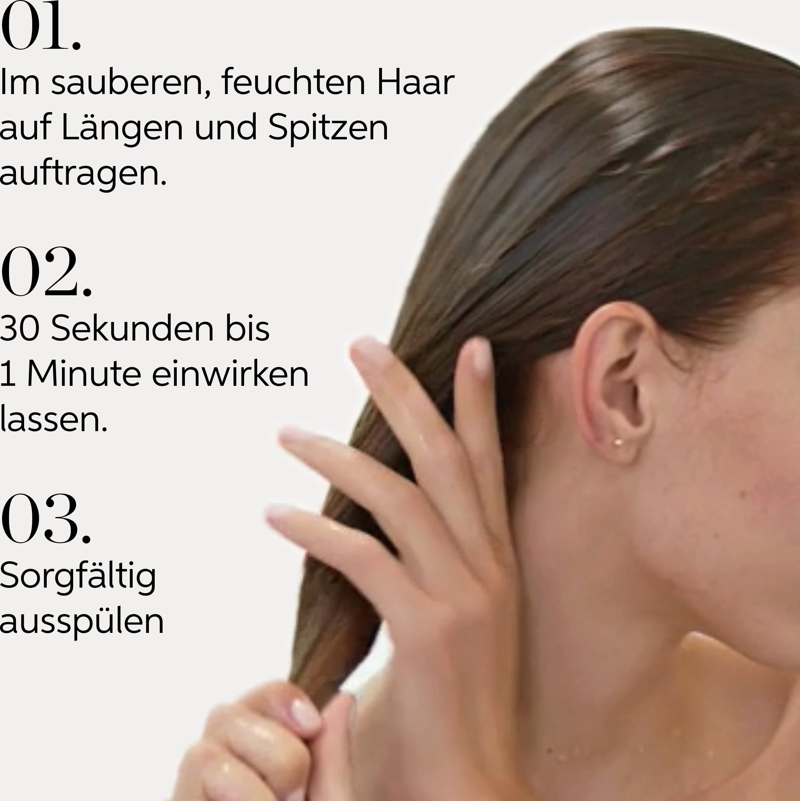 - Fördela i fuktigt hår. Låt verka i 30 sekunder och skölj noggrant.